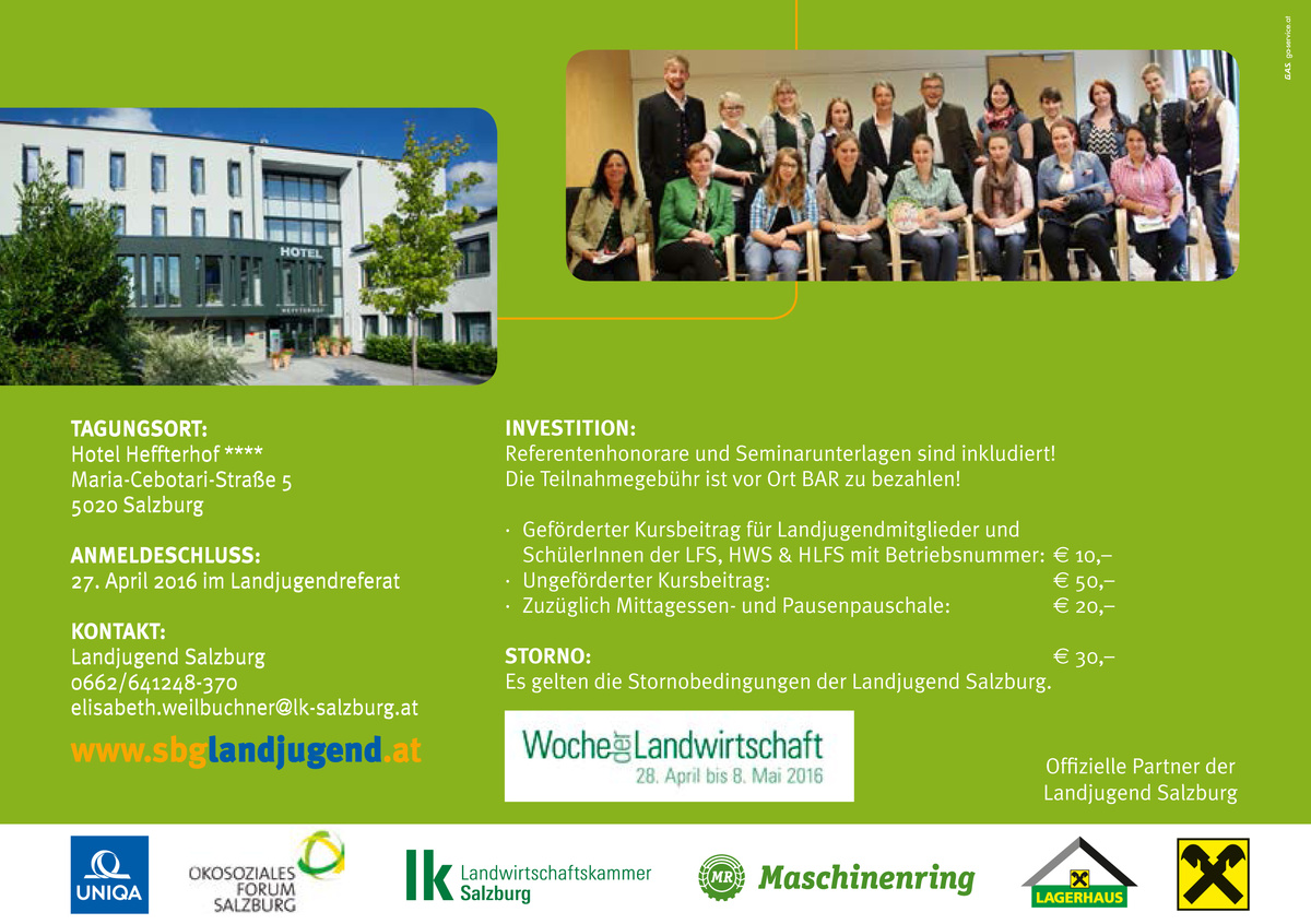 Am Freitag, den 6. Mai 2016 findet ab 09.00 Uhr im Heffterhof Salzburg der erste „Tag der jungen Landwirtschaft Salzburg“ statt.