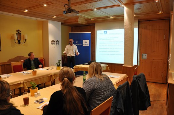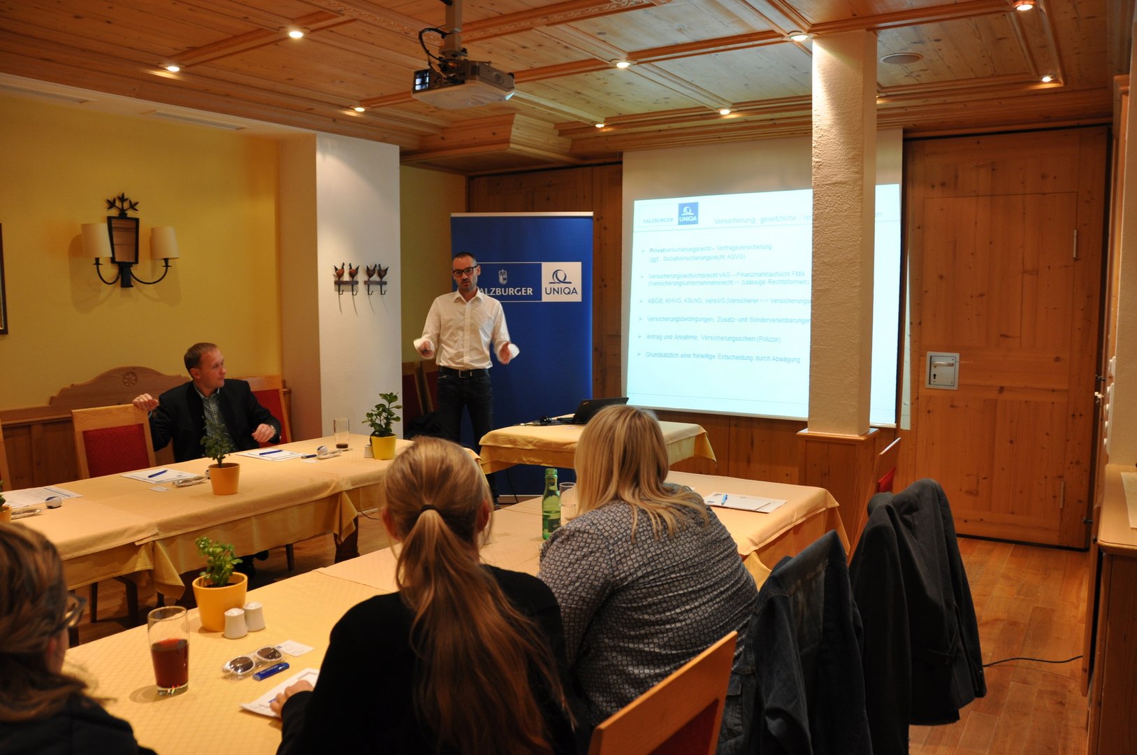 Schadensverhütung, Versicherungsbestand, Risikoanalyse. Begriffe die in der Versicherung landwirtschaftlicher Betriebe häufig fallen. Doch was steckt dahinter? Auf was muss geachtet werden? Wo liegen häufige Fehlerquellen? All diese Fragen beantworteten Regionalmanager Arnold Ahornegger und Gewerbeexperte Stefan Goldner beim 1. UNIQA-Landjugend Agrarkreis in St. Johann. 13 interessierte junge Erwachsene fanden sich am 18. Oktober in St. Johann ein, um sich über das Thema Versicherung zu informieren. „Wer hatte schon einmal etwas mit einer Versicherung zu tun?“, fragte Arnold Ahornegger gleich zu Beginn in die Runde. Innerhalb weniger Sekunden waren alle Hände erhoben. Auch für Betriebe ist es unabdingbar, sich mit Versicherungen auseinander zu setzen. Bevor Versicherungen abgeschlossen werden, müssen verschiedene Punkte berücksichtigt werden. Was besteht für ein Versicherungsbestand? Wie fällt die Risikoanalyse aus? Werden Zusatzversicherungen benötigt? Diese Fragen werden bei einem Erstberatungsgespräch anhand eines Datenerhebungsblattes geklärt. Die Bewertung der Gebäude erfolgt über ein externes Unternehmen. Dieses steht in keiner Verbindung zu UNIQA, sondern bietet die Dienstleistung von Sachverständigen an.