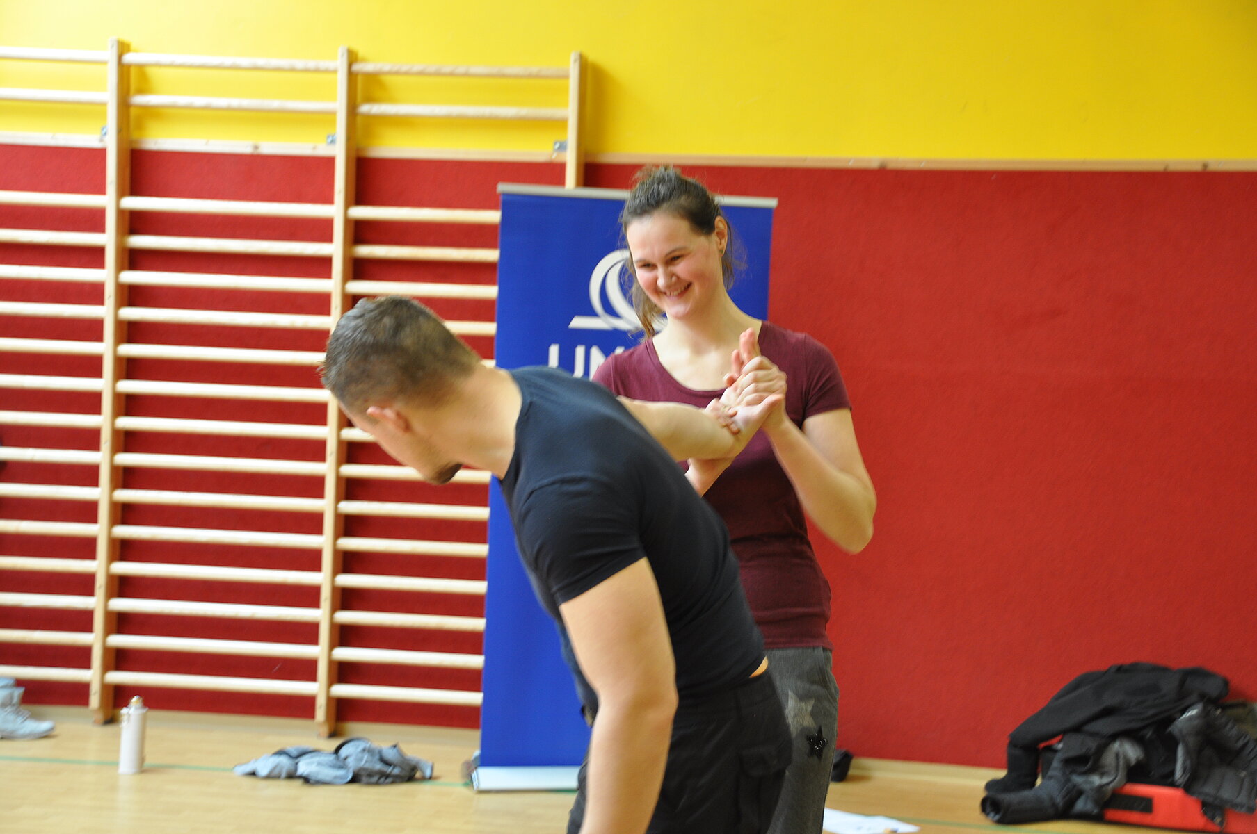 Der Kurs „Selbstverteidigung“ rundete das Programm ab. Für die sportlich Interessierten gab es Techniken zur Abwehr bei einem Angriff. Auch der Einsatz von Pfefferspray, Elektroschockern und Gegenständen wurde geprobt. Einfache Tipps und Tricks, die im Ernstfall schnell anwendbar sind, wurden vom Experten Alfred Fric, Inhaber der Personal Trainer Akademie, an die Teilnehmer weitergegeben. „Ich finde es sehr spannend, wie auch körperlich unterlegene Personen sich selbst durch die richtige Grifftechnik befreien können“, resümiert Hannah Brandhuber, Bildungsreferentin der Landjugend Bezirk Flachgau.