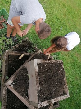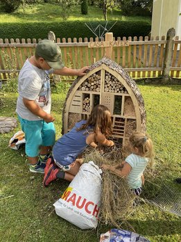 Am vergangenen Freitag fand der zweite Teil des Projektes statt. Gemeinsam mit den Kindern wurden die Erdäpfel geerntet. Ein spannendes Programm mit lustigen Spielen, Stofftaschen bedrucken und Insektenhotels bauen ließ die Kinderherzen höherschlagen. Als Abschluss fand ein gemeinsames Abendessen statt, es gab Ofenkartoffeln für alle.