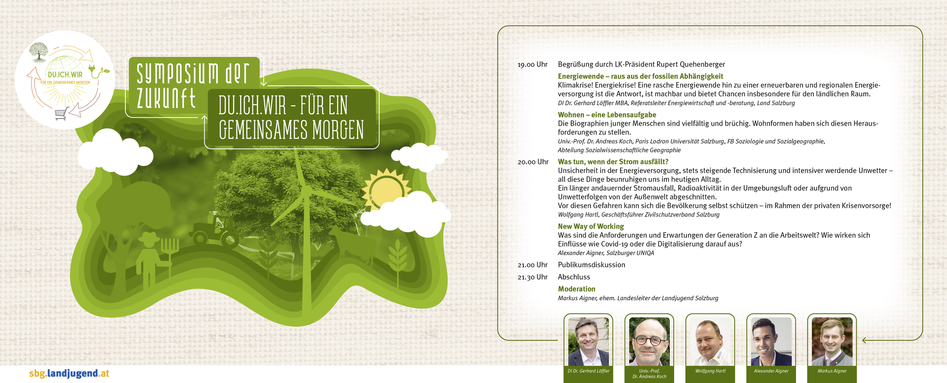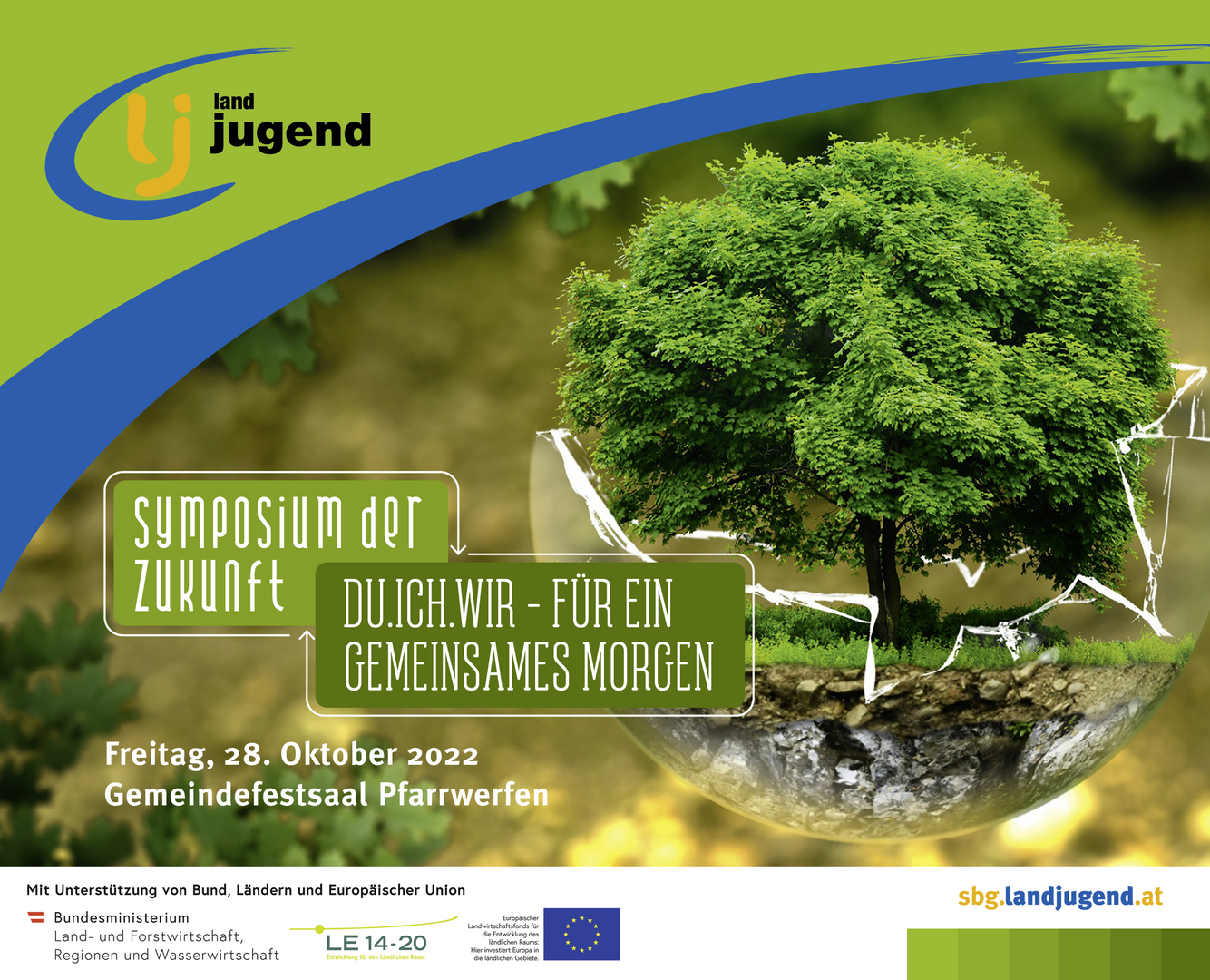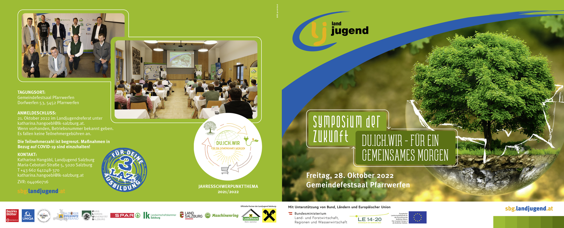 Am 28. Oktober 2022 veranstaltet die Landjugend Salzburg im Gemeindesaal Pfarrwerfen passend zum Jahresschwerpunktthema 2021/22 "DU.ICH.WIR - FÜR EIN GEMEINSAMES MORGEN" das Symposium der Zukunft.