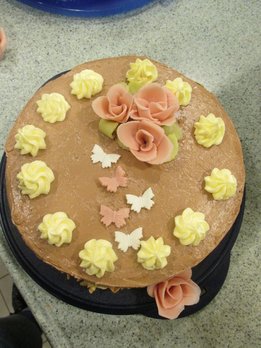 Das Ergebnis waren zauberhafte Meisterwerke. Unter der fachkundigen Anleitung von Referent Stefan Huber lernten die Teilnehmerinnen von der Herstellung einer Buttercreme und Schokoladenglasur, über die richtige Handhabung eines Dressiersackes und das Schreiben mit einem Stanitzel. Auch unterschiedlichste Blumen aus Marzipan wurden gefertigt, denn das Auge isst ja bekanntlich mit. „Natürlich backe ich zu Hause gerne. Allerdings soll das Ganze ja auch ein dementsprechendes Bild haben, “ so Caroline Anzinger aus Eugendorf, die das Erlernte „natürlich gleich zu Hause ausprobieren“ möchte.