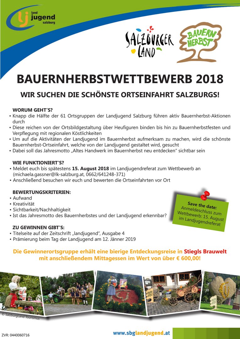 - Meldet euch bis spätestens 15. August 2018 im Landjugendreferat zum Wettbewerb an (michaela.gassner@lk-salzburg.at, 0662/641248-371)