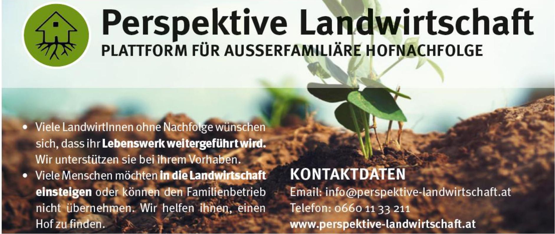 Das Pensionsalter rückt näher und keine Hofnachfolge ist in Sicht? Vor dieser Herausforderung stehen fast ein Drittel der BetriebsleiterInnen über 50. Wer sein Lebenswerk trotzdem in die Hände einer neuen Generation übergeben möchte, hat verschiedene Möglichkeiten. Neben der Suche im erweiterten Familien- und Bekanntenkreis können sich LandwirtInnen auch an die Plattform „Perspektive Landwirtschaft“ wenden, um sich so Unterstützung zu holen. Im Zuge eines Reflexions-Fragebogens werden Überlegungen über zukünftiges Wohnen und Arbeiten, Nachfolge-Profil, Probezeit oder Übergabe getroffen. Auf Grundlage eines persönlichen Erstgespräches wird ein Steckbrief erstellt und auf der Plattform freigeschaltet. Auch Betriebe auf der Suche nach einer Kooperation, einer Pächterfamilie oder MitbewirtschafterInnen melden sich bei der Plattform. In jedem Fall unterstützt Perspektive Landwirtschaft die BetriebsleiterInnen bei der Suche nach einer passenden Lösung.