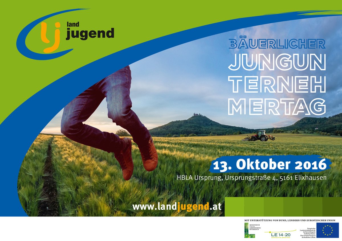 Am Donnerstag, den 13. Oktober 2016 findet der Bäuerliche Jungunternehmertag in der HBLA Ursprung/Salzburg in 5161 Elixhausen statt. Spannende Vorträge rund um die Themen Hofübergabe/Hofübernahme, Innovationen in der Landwirtschaft, Big Data, Risikomanagement, Lebensqualität am Bauernhof und Erfahrungsberichte von JunglandwirtInnen erwarten die TeilnehmerInnen. Dabei können brennende Fragen beim Roundtable an ExpertInnen sowie der Politik und Interessensvertretung gestellt werden.