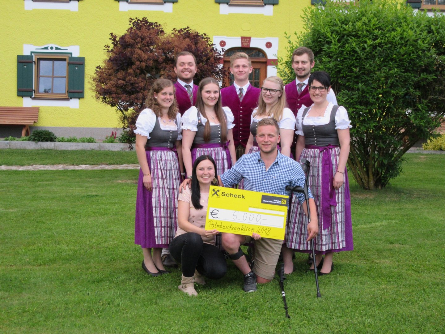 Freitag und Samstag vor dem Palmsonntag wurden die Buschen schließlich vor dem Heimatwerk Salzburg für den guten Zweck zum Verkauf angeboten. Nun fand die Übergabe des Spendenerlöses statt. Seit 1994 verfolgen die Ortsgruppen der Landjugend Bezirk Flachgau die Tradition des alljährlichen Palmbuschenverkaufes. "Wir führen die Palmbuschenaktion neben dem Grundaspekt der Traditionserhaltung zur Förderung der jugendlichen Gemeinschaft durch. Aber auch auf den karikativen Zweck wird ein besonderes Augenmerk gelegt“, so Markus Aigner, Obmann der Landjugend Bezirk Flachgau. Ein „echter“ Flachgauer Palmbuschen besteht aus sieben Bestandteilen: Palmkätzchen, Stechpalme, Wacholder, Segenbaum, Eibe, Buchs und Zeder, wobei die Palmkätzchen den ältesten Bestandteil des Palmbuschens darstellen. Jedes einzelne Material symbolisiert dabei eine andere Bedeutung. So steht z.B. die Stechpalme für die Fortsetzung des Lebens während des Winters oder der Buchs für Fruchtbarkeit und soll vor Krankheit und Unglück schützen. Der Reinerlös der diesjährigen Palmbuschenaktion in der Höhe von € 6.000,00 wurde an ein aktives Landjugendmitglied gespendet. Martin Haas, ehemaliger Ortsgruppenobmann der Landjugend Thalgau, hatte vor knapp einem Jahr einen schweren Arbeitsunfall. Durch sein monatelanges hartes Training und lange Reha-Aufenthalte konnte sich Martin wieder tapfer in den Alltag zurückkämpfen. Der Erlös aus der Palmbuschenaktion wurde für den Umbau des Bauernhauses und des Autos sowie für die Anschaffung von Trainingsgeräte verwendet.