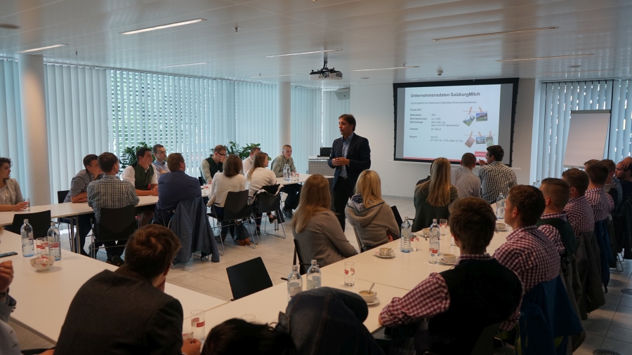 Im Rahmen der Woche der Salzburger Landwirtschaft fand am 4. Mai 2018 der zweite Bundesagrarkreis der Landjugend Österreich im heurigen Jahr statt. Thema war „Der Landwirt im Konflikt zwischen Handel, Gesetz und Konsument“. Eine Betriebsbesichtigung der SalzburgMilch GmbH stand ebenso auf dem Programm wie Diskussionen über zukünftige Herausforderungen von Rinderhaltern. Salzburg. Über 30 junge Landjugendmitglieder aus allen Bundesländern Österreichs machten sich auf den Weg zur SalzburgMilch GmbH, um von Geschäftsführer Christian Leeb Einblick in die Molkerei und das neue Qualitätsprogramm „Premium Milchmacher“ zu erhalten. „Jährlich werden ca. 266,4 Millionen Liter Milch angeliefert, davon ist mehr als die Hälfte sogenannte Spezialmilch. In unserem Spezialmilchsortiment findet sich neben unserer Premium Milch, die Reine Lungau – Biosphärenmilch, Heumilch und die Biomilch“, so Leeb. Mit 600 verschiedenen Produkten ist die SalzburgMilch GmbH ein Gesamtanbieter der weißen, gelben und bunten Palette, Bio-Produkte sowie Haltbarkeitsprodukte. Die weiße Milchproduktpalette steht für Trinkmilch, Joghurt und Sahneerzeugnisse, während mit der gelben Milchproduktpalette allgemein Käseprodukte gemeint sind. Die bunte Palette umfasst Fruchtjoghurts, Kakao und ähnliche Produkte. „Sehr interessant finde ich, dass rund 46 % der Milchprodukte in den Export gehen und davon mehr als zwei Drittel nach Deutschland. Ich glaube, das zeigt auch von einem gewissen Verlangen nach gentechnisch frei erzeugter Milch in unserem Nachbarland, die auch unsere Qualität zu schätzen wissen“, erzählt Landesobmann und Teilnehmer Maximilian Brugger.