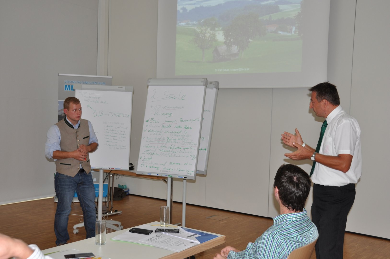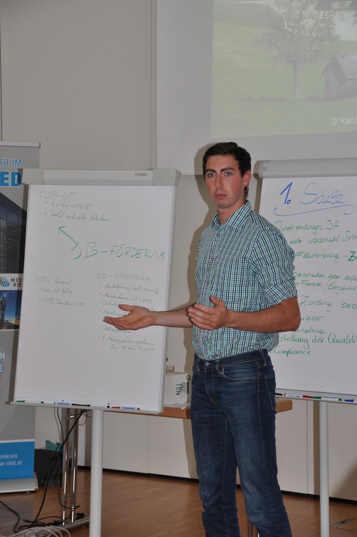 Zwischen 6. und 10. September 2017 stand die Rieder Messe im Zeichen der landwirtschaftlichen Produzenten und Konsumenten. Die „Zukunft der gemeinsamen Agrarpolitik“, neueste Stalltechnik und Maschinen begeisterten die BesucherInnen. Am Freitag, den 8. September fand der Bundesagrarkreis der Landjugend Österreich zum Thema „Zukunft der gemeinsamen Agrarpolitik“ statt. Rund 20 Personen aus den verschiedenen Bundesländern erarbeiteten in drei Workshops Verbesserungsvorschläge zu Direktzahlungen, Ländlicher Entwicklung und Unterstützung für Junglandwirte. Diese Ausarbeitung wird zusammen gefasst auf einem Arbeitspapier beim nächsten Bundesagrarkreis dem österreichischen Landwirtschaftsminister Andrä Rupprechter übergeben. „Alle TeilnehmerInnen waren sich einig, dass besonders die Unterstützung der Junglandwirte sehr wichtig ist und weiterhin gefördert werden soll. Es wurde auch über die Sinnhaftigkeit von verschiedenen Förderungen diskutiert“, so Sebastian Feldbacher. Zuvor erhielten die TeilnehmerInnen noch einen kurzen Input von DI Karl Bauer, welcher die Bedeutung, Ziele und die wichtigsten Inhalte der GAP (Gemeinsame Agrarpolitik) übersichtlich und sehr konkret darlegte. „Die Landwirte sind für die Europäische Union sehr wichtig und deshalb wird die EU auch in Zukunft hinter ihnen stehen“, so zitierte Karl Bauer Jean-Claude Junker, den Präsidenten der Europäischen Kommission. Am frühen Nachmittag wurden am Stand der Landjugend Oberösterreich die erfolgreichen österreichischen MäherInnen von Ingenbohl/Brunn (CH) empfangen und in einer Interviewrunde den Messebesuchern vorgestellt. Auch die amtierende Europameisterin im Handmähen Elisabeth Schilcher (Köstendorf) war vertreten.