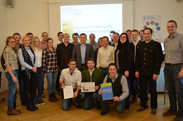 Agrarpolitische Herausforderungen und Chancen standen im Mittelpunkt des jüngsten Bunde-sagrarkreises der Landjugend Österreich, der Ende der vergangenen Woche in Wien und Nie-derösterreich stattfand. Landwirtschaftskammer (LK) Österreich-Präsident Hermann Schultes, Generalsekretär Josef Plank sowie Jakob Schrittwieser aus dem Kabinett von Bundesminister Andrä Rupprechter nahmen sich Zeit, um mit den Jugendlichen über die Zukunft der Gemein-samen Agrarpolitik (GAP), die Rolle der Gesetzgebung und Herausforderungen für Interessen-vertretungen zu diskutieren. Einen interessanten Einblick in die Welt der Raiffeisen Ware Aus-tria (RWA) gab es am nächsten Tag bei einem Gespräch mit RWA-Vorstandsdirektor Stefan Ma-yerhofer und einer Führung durch den Standort Korneuburg.