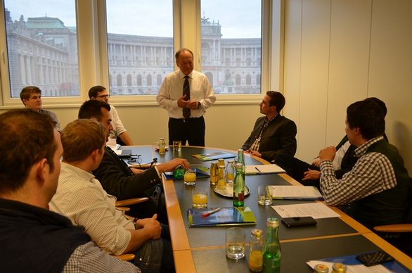 „Wir sind sehr froh und stolz, dass wir derartig hochrangige und kompetente Vertreter der heimischen Landwirtschaft für unseren Bundesagrarkreis gewinnen konnten. Einerseits hatten wir die Möglichkeit, ihre aktuellen Tätigkeitsfelder und Herausforderungen besser kennenzulernen. Andererseits haben sie uns auch gezeigt, worauf es ankommt, um als bäuerliche Unternehmerinnen und Unternehmer in Zukunft erfolgreich sein zu können“, betonte Bundesvorstands-Mitglied Georg Schoditsch im Hinblick auf Knowhow, Engagement, Innovationskraft und eine entsprechende technische Ausrüstung. Schrittwieser: Jugend entwickelt Familienbetriebe zukunftsorientiert weiter Eine sehr angeregte Diskussion gab es zu Beginn des Bundesagrarkreises mit Jakob Schrittwieser aus dem Landwirtschaftsministerium. Er betonte, dass die Zukunft unserer Familienbetriebe primär nicht Wachstum sondern vielmehr Weiterentwicklung erfordere. Besonders die Jugend setzt dabei wichtige Akzente, um innovativ, zukunfts- und konsumentenorientiert zu denken und zu handeln. Positiv bewertet er, dass Österreich im EU-Vergleich sehr junge Bäuerinnen und Bauern hat, die über eine gute Ausbildung verfügen. Weiters sagte Schrittwieser, dass die Anliegen der Landjugend auch Landwirtschaftsminister Rupprechter sehr wichtig sind und in die Verhandlungen zur künftigen EU-Agrarpolitik einfließen werden. Zu diesen Anliegen zählen stabile und planbare Rahmenbedingungen für Familienbetriebe, eine umfassende Junglandwirte-Förderung, der Erhalt der Bildungsmaßnahmen sowie die Weiterentwicklung der Betriebskonzepte durch eine verstärkte Unternehmensberatung.