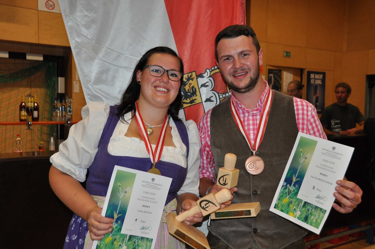 Von 14. – 18. Juli 2016 fand der 57. Bundesredewettbewerb der Landjugend Österreich in Vorarlberg statt. Neben den Kategorien „Neues Sprachrohr, Vorbereitete Rede unter und über 18 Jahren“ gilt die Kategorie „Spontanrede“ als Königsdisziplin bei Redewettbewerben. Für die Landjugend Salzburg gab es GOLD durch Carina Reiter und BRONZE durch Paul Schreilechner. Vorarlberg, Bezau: Vor Leuten zu reden fällt so Manchem bereits sehr schwer. Über ein Thema zu referieren, dass man gezogen hat, sich nur eine Minute vorbereiten kann und spontan zwei bis vier Minuten in eloquenter Weise mit stichhaltigen Argumenten zu reden, bedarf es Mut, Allgemeinwissen und Talent! Mit ihrer Performance bewiesen Carina Reiter und Paul Schreilechner, dass sie das perfekt beherrschen. Gegenüber zwei Personen aus jedem Bundesland und den Gästen aus dem benachbarten Südtirol setzten sich die beiden durch und belegten die Ränge eins und drei.