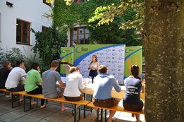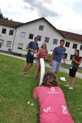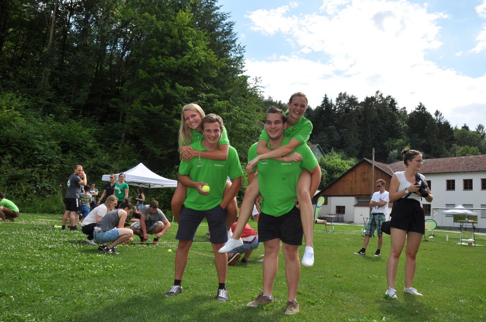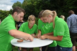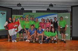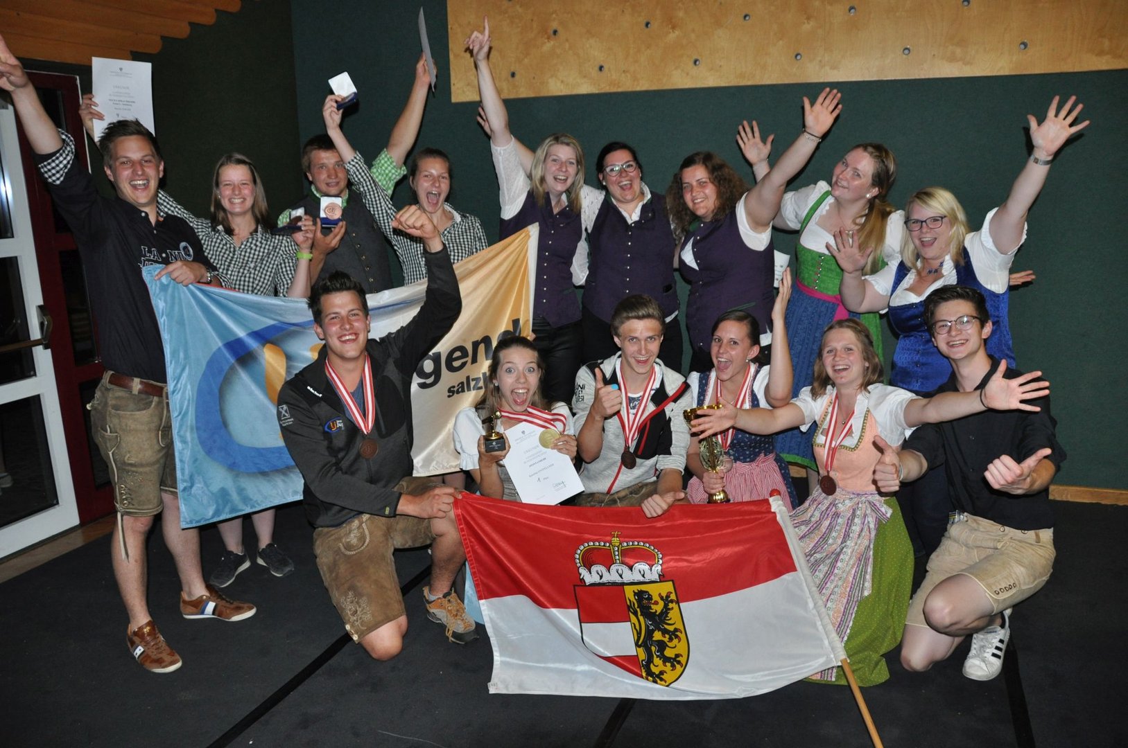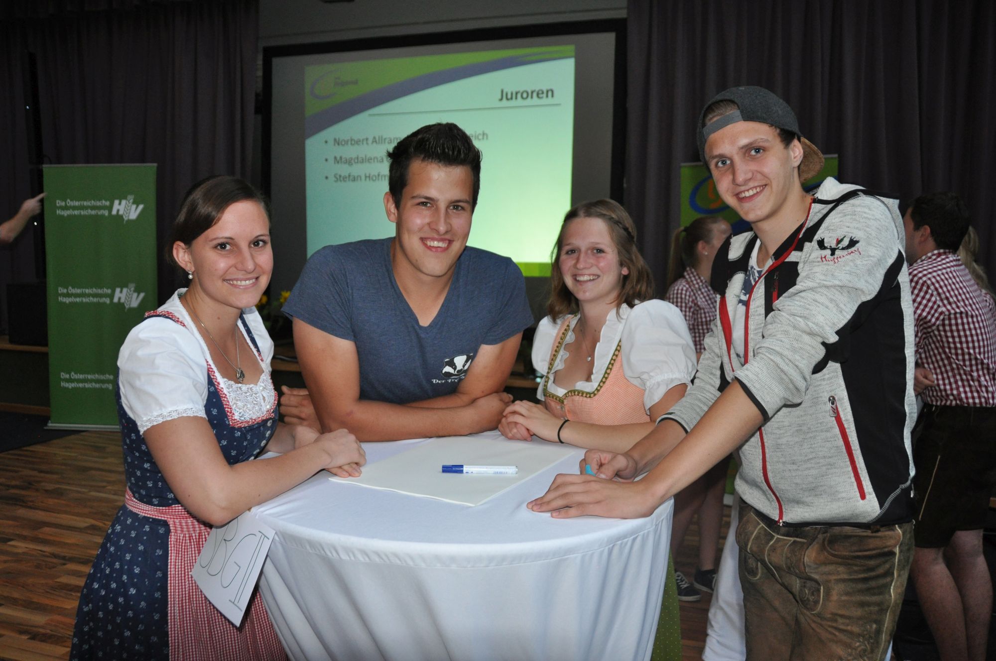 4er-Cup: Team Saalfelden holt sich die Bronzemedaille Beim Wissens- und Geschicklichkeitsbewerb „4er-Cup“ starteten insgesamt je zwei Teams aus sieben Bundesländern. Die 4er-Cup-Teams bestehen aus je zwei Mädchen und zwei Burschen. Gemeinsam bewältigten sie Stationen, in denen Wissen im Bereich Politik, Österreich, Englisch, Geschichte sowie zum Jahresschwerpunkt „Daheim kauf ich ein“ abgefragt wurde. Beim Actionparcours waren neben jeder Menge Spaß vor allem Teamwork und Geschick gefragt. Bei den verschiedenen Stationen glänzten die Salzburger Gruppen und konnten sich viele Punkte sichern. „ Der Parcours war sehr anspruchsvoll, aber mit Teamwork konnten wir die Aufgaben sehr gut lösen. Auch im Finale lief es für uns sehr gut. Wir konnten durch die Bank fast alle Fragen beantworten und konnten so noch einige Punkte sammeln“, so Michael Gaßner, Teilnehmer und Ortsgruppenleiter der Landjugend Saalfelden. Das Team aus Saalfelden schlug sich beachtlich und erreichte den 3. Rang. Das Team der Landjugend Oberösterreich holte den Bundessiegertitel und verwies das Team der Landjugend Steiermark auf Platz 2. Das Team der Landjugend Berndorf erreichte den 7. Rang. Alle TeilnehmerInnen und Juroren waren sich einig: „Der Bundesentscheid war ein riesengroßes Erlebnis. Die Stimmung während des Bewerbes und speziell bei der Siegerehrung ist einmalig. So etwas muss man einmal in der Landjugendkarriere erlebt haben, “ so die Abordnung der SalzburgerInnen.