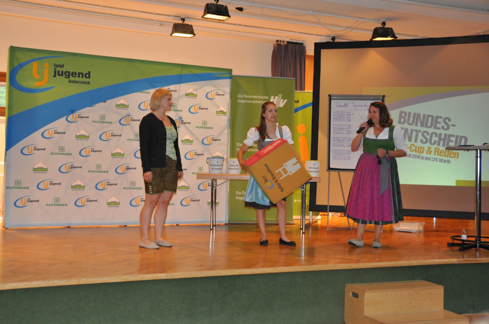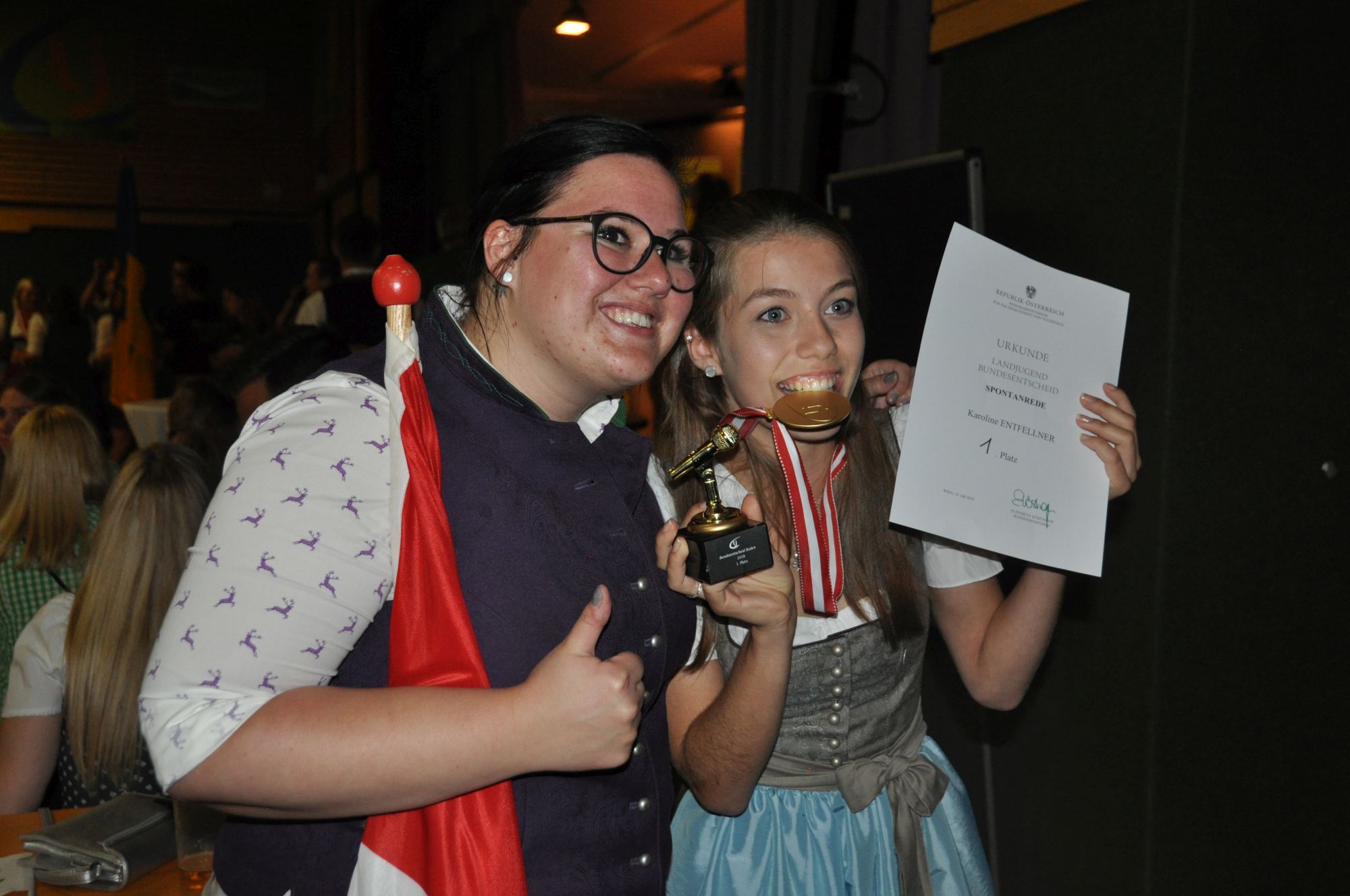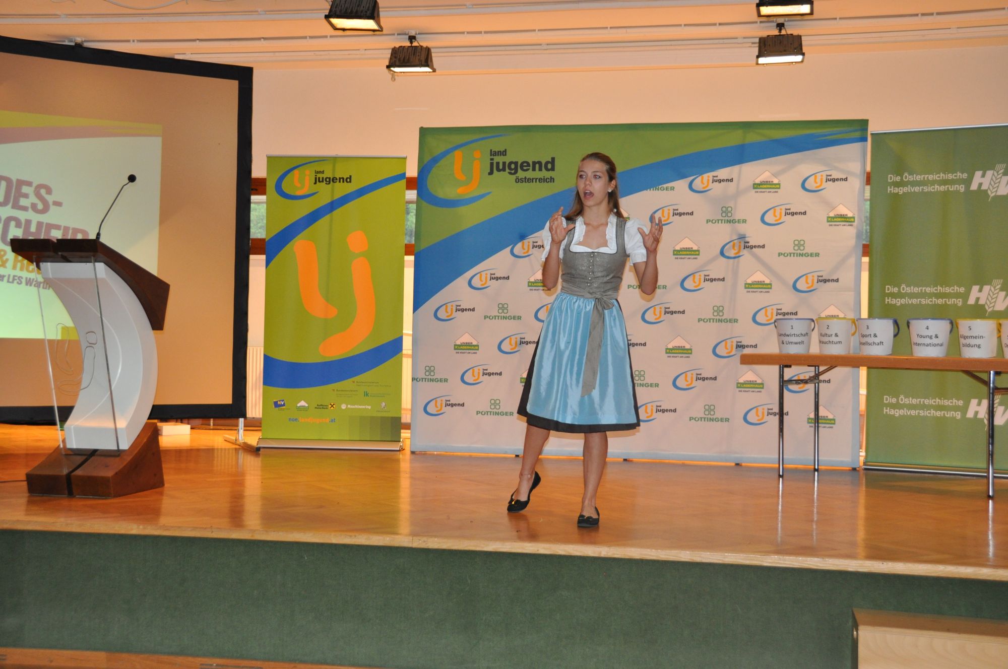 Der Bundesbewerb der Spontanrede ist ähnlich dem Turniermodus aufgebaut. Es gibt eine Vorrunde, bei der jede/r TeilnehmerIn zwei Reden zum Besten gibt. Der oder die TeilnehmerIn würfelt ein Überthema, welches eines der sechs Schwerpunktbereiche der Landjugend darstellt. Zur Auswahl stehen dabei Allgemeinbildung, Landwirtschaft & Umwelt, Sport & Gesellschaft, Brauchtum & Kultur, Service & Organisation oder Young & International. Ist das Thema ermittelt, wird der Titel der Rede gezogen. Daraufhin ist eine Minute Zeit, um sich auf die zwei- bis vierminütige Rede vorzubereiten. Nach der Vorrunde qualifizieren sich die acht besten für die KO-Phase. Zwei TeilnehmerInnen duellieren sich dabei zum gleichen Redethema. „Aus jedem Bundesland sitzt ein Vertreter in der Jury. Das heurige Niveau war großartig und Karoline hat alle mit ihren Argumenten und ihrem Redetalent überzeugt“, so Landesleiterin Karin Asen. Karoline Entfellner verwies Georg Stromberger (Kärnten) in einem mehr als spannenden Finalduell auf den 2. Platz. In ihrer Rede referierte sie über die Skination Österreich und ob es notwendig ist, dass jeder einmal auf den Skiern gestanden ist und überzeugte damit die Juroren sowie die ZuseherInnen. „Ich kann es überhaupt noch nicht fassen, dass ich wirklich gewonnen habe. Mit Georg hatte ich einen starken Gegner, der ebenso wie ich im letzten Jahr schon bis in die Duellphase gekommen ist und somit schon einiges an Erfahrung mitbringen konnte. Umso mehr habe ich mich gefreut, dass ich heuer den Bundesiegertitel erreicht habe“, so die Bundessiegerin. In der Kategorie „Neues Sprachrohr“ nahmen Nicole Edler und Sonja Gell, beide von der Landjugend Mauterndorf-Tweng, die ZuhörerInnen mit auf eine Wanderung einer deutschen Touristin auf eine Lungauer Alm. Martin Steiner (Landjugend Piesendorf) konnte die Jury ebenfalls mit seiner Rede „A de Berg bin i gern“ von sich begeistern. Tolle Leistungen der Salzburger RednerInnen Im heurigen Jahr zeigte das Salzburger Team eine gute Mischung aus Routine und jungen motivierten RednerInnen. Mit soliden Auftritten und toller Vorbereitung gelangen durchwegs gute Platzierungen: