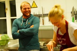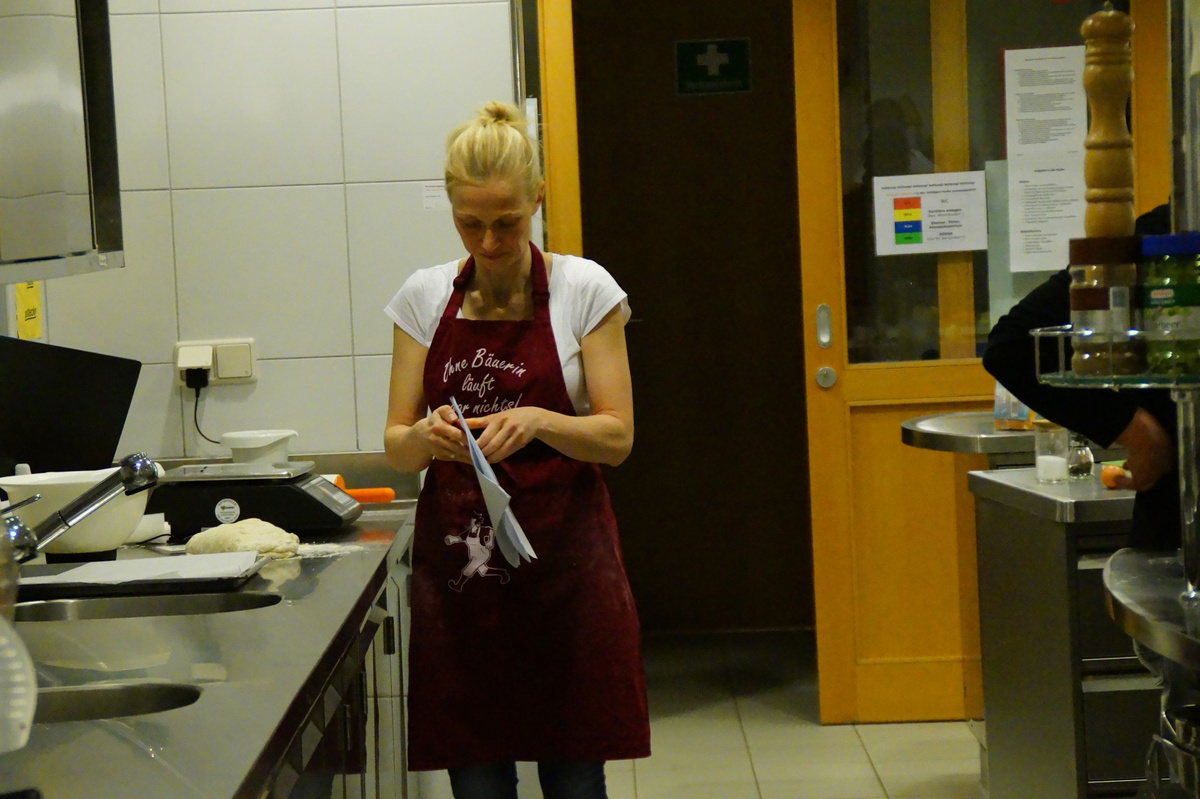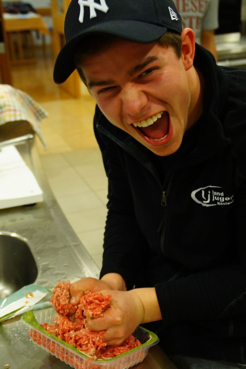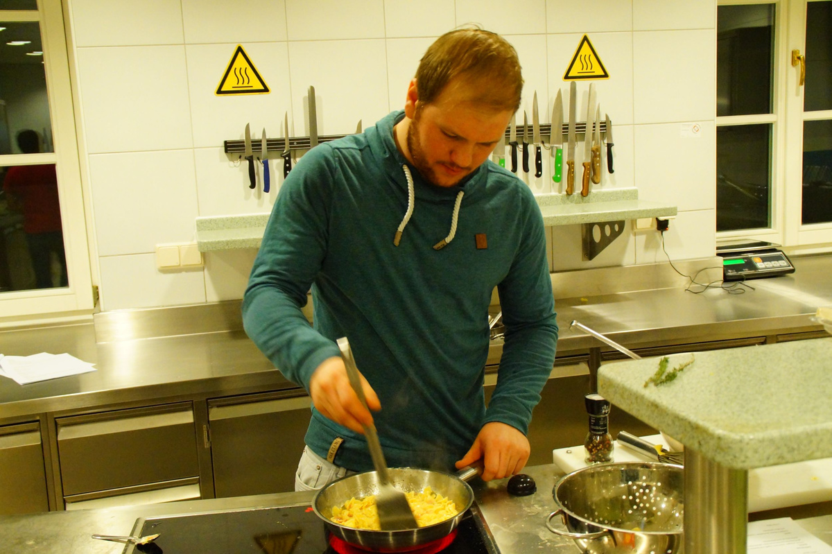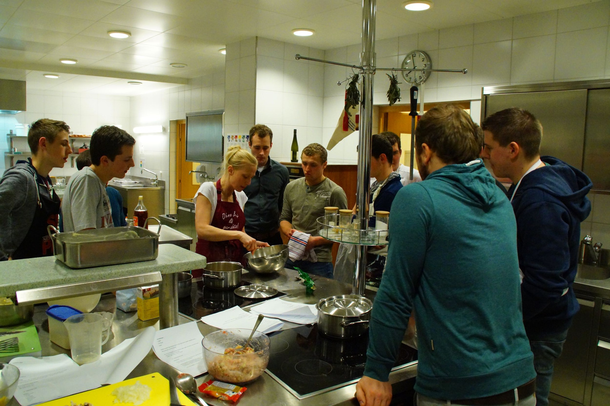Dreizehn Burschen aus dem Flachgau stellten sich der Herausforderung und zauberten köstliche Menüs. Angefangen von einer Grießnockerlsuppe als Vorspeise, über Pizza, Schinken-Käse-Omelett und Rahmnocken mit Jägersauce bis hin zum süßen Abschluss mit Topfenauflauf und Beeren kochten die Burschen unter der fachkundigen Anleitung von Seminarbäuerin Carmen Glück regelrechte Gaumenfreuden. So manche Dame wird da und dort bestimmt in den Genuss der Workshop-Ergebnisse kommen!
