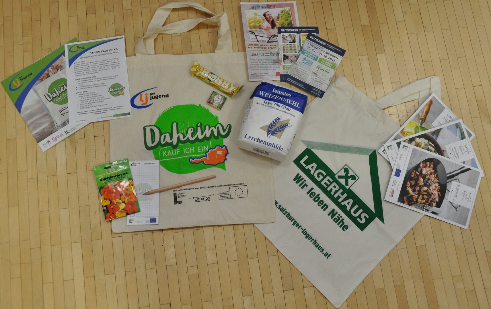 Die Taschen waren befüllt mit regionalen Produkten von Salzburger Firmen wie Mehl der Lerchenmühle, BioArt Schokolade, Salzburg Schokolade, Sämereien vom Salzburger Lagerhaus und Informationsmaterial. Wichtige Fakten und spannende Details können im Folder nachgelesen werden, der sich ebenfalls im Sackerl befindet. Wer sich fragt, welche Lebensmittelkennzeichnungen es hierzulande gibt und was sie bedeuten, findet darin eine praktische Übersicht zu AMA-Gütesiegel, AMA-Biosiegel & Co.