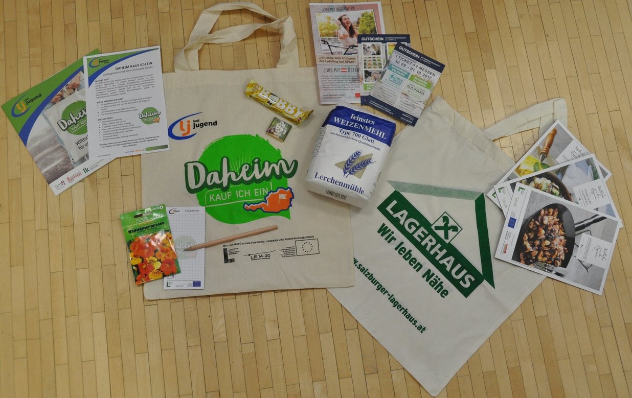 „ ‚Daheim kauf ich ein‘ ist ein Thema das den Zeitgeist absolut trifft. Immer mehr wird wieder auf die Qualität und die Regionalität der Produkte geachtet. Damit stärken wir unsere heimischen Betriebe. Mit der Aktion möchten wir zeigen, dass auch uns das Thema am Herzen liegt. Zudem passt es perfekt zu unserem Jahresschwerpunktthema ‚Vielfalt Regionalität – Salzburg & seine Qualität‘, mit dem wir die Besonderheiten und regionalen Schätze unseres Bundeslandes hervorheben möchten“, betont Landesobmann Maximilian Brugger. Mit der „Daheim kauf ich ein“-Tour wollen wir in der Bevölkerung das Bewusstsein für den Wert von Regionalität steigern“, so die Bundesleiterin der Landjugend Österreich, Julia Saurwein. „Wir möchten damit zeigen, welche Vorteile es bringt, sich für regionale Produkte und Dienstleistungen zu entscheiden. Denn wir verbessern damit unser Klima und schützen die Umwelt, wir beeinflussen die Qualität der Produkte, sichern Arbeitsplätze in der Region und schaffen so auch mehr Lebensqualität und Attraktivität im ländlichen Raum.“ Österreichweit werden 26.000 Baumwolltaschen an die Bevölkerung verteilt. Ein herzliches Dankeschön an alle Unternehmen, die es erst möglich gemacht haben die Sackerl mit regionalen Produkten und Informationsmaterial zu füllen.