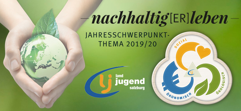 nachhaltig[ER]leben – das Jahresschwerpunktthema 2019/20 der Landjugend Salzburg Nachdem das Jahresschwerpunktthema „Vielfalt Regionalität – Salzburg & seine Qualität“ mit der Produktion des Landjugend-Wissensbrettspieles „Streifzüge durchs Salzburger Land“ einen fulminanten Abschluss gefunden hat, setzten wir mit dem Thema „nachhaltig[ER]leben“ neue Schritte. „Sei es die Ressourcen-Nutzung, der wirtschaftlicher Erfolg oder die gesellschaftliche Partizipation. Diese Belange liegen uns am Herzen und dazu wollen wir Zukunftsverantwortung übernehmen“, beschreibt Johanna Schafflinger die Intension des neuen Schwerpunktthemas. Gemeinsam mit den Orts- und BezirksfunktionärInnen werden Aktionen zum Thema erarbeitet.