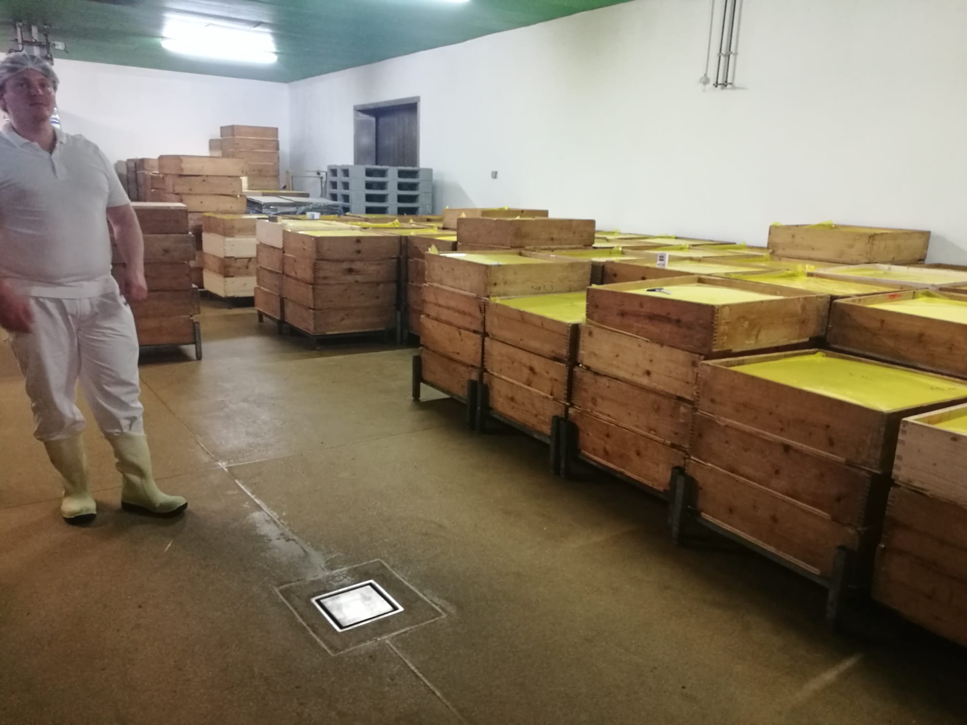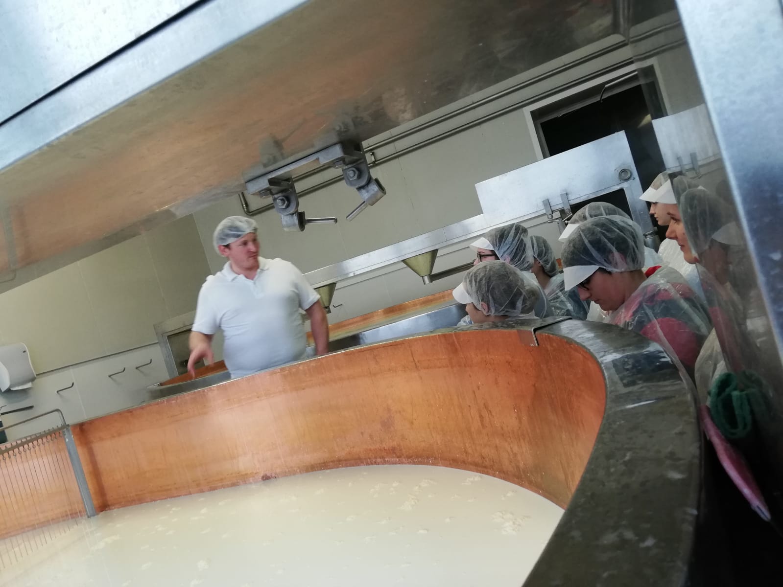 Genau diese Fragen beantwortete uns Peter Rehrl beim ersten Agrarkreis 2020. Im Zuge einer Führung bei der Käsereigenossenschaft Elixhausen bekamen 31 Landjugendmitglieder aus dem Bezirk Flachgau einen Einblick darüber, wie Käse hergestellt wird. Von der Fermentation der Milch, über das Einlegen ins Salzbad, bis hin zur Reifung konnten wir alles begutachten. Jeder Schritt der Produktion ist wichtig für das spätere Aussehen und den Geschmack. Damit man verschiedene Sorten erhält, sind die Produktionsschritte immer unterschiedlich bzw. dauern unterschiedlich lange. Große Unterschiede findet man zum Beispiel in der Reifung. So muss Emmentaler für mindestens drei Monate reifen, während für diverse Weichkäsesorten zwei bis drei Wochen Reifezeit ausreichend sind.
