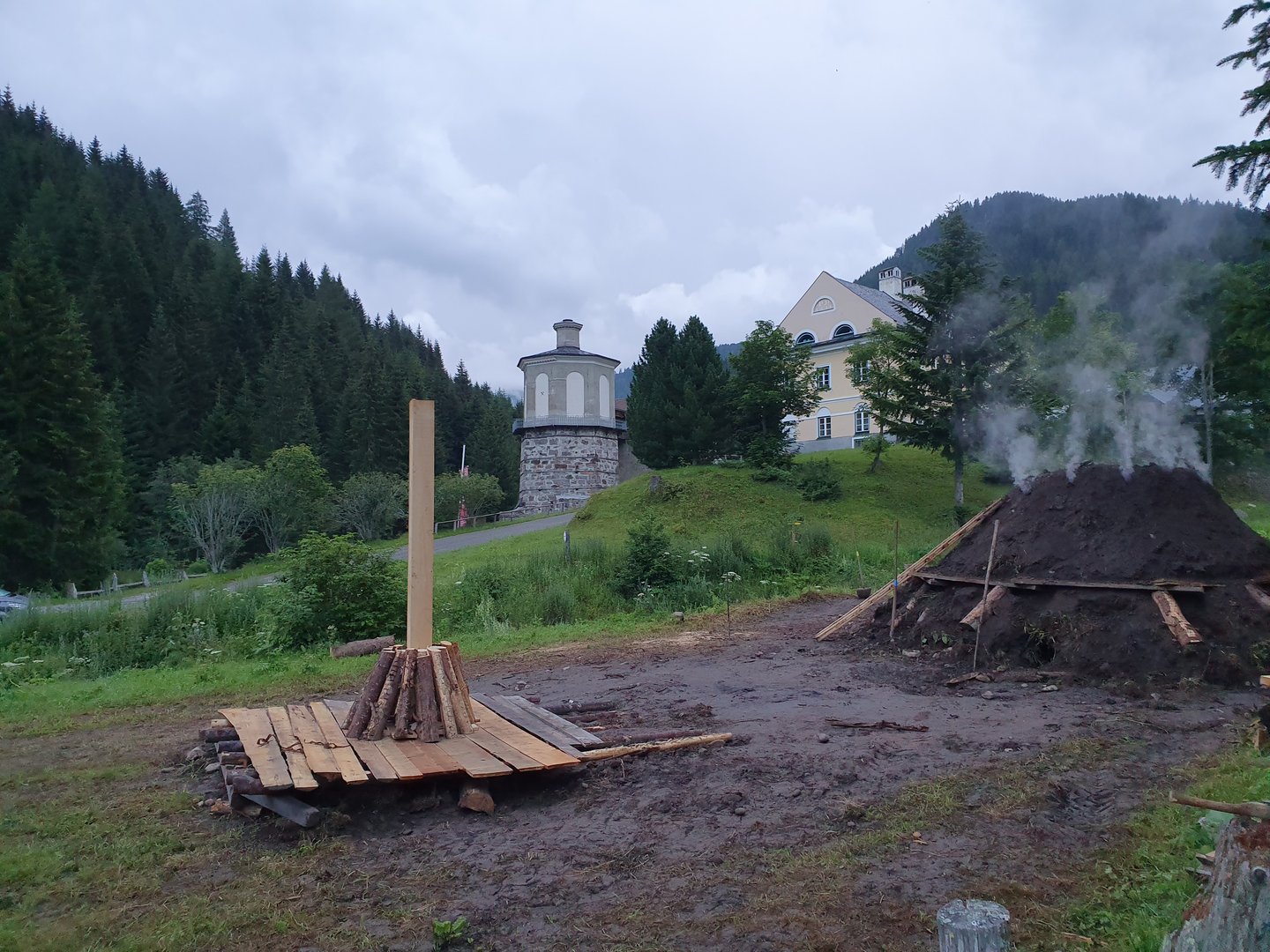 Die Arbeit des Kohlenbrenners ist ein UNESCO Immaterielles Weltkulturerbe. In Österreich gibt es nur noch 15 Personen, die dieses Handwerk beherrschen (Stand 2013). Peter Moser aus Thomatal ist einer davon und begleitet die Landjugendmitglieder beim Bau eines Rundkohlenmeilers.