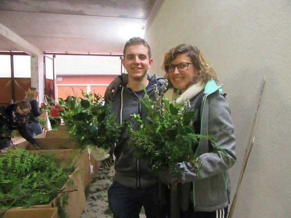 Sieben verschiedene Grüntöne und buntgeschmückt mit breiten Sägespänen und der traditionellen Palmbreze– so präsentiert sich der Flachgauer Palmbuschen. 21 Ortsgruppen des Landjugendbezirkes Flachgaus und weitaus mehr als 800 Arbeitsstunden fließen in die Erstellung von über 600 großen Palmbuschen und 400 Handbuschen. Am Freitag und Samstag vor dem Palmsonntag werden sie anschließend am Residenzplatz in der Stadt Salzburg verkauft. Gesammelt wird für den guten Zweck! Flachgau. „Es würde im Frühling mittlerweile schon etwas fehlen, wenn sich die 21 Ortsgruppen des Flachgaus nicht zum gemeinsamen Beschaffen des Materials und Binden der traditionellen Palmbuschen zusammenfinden“, erklärt Landesleiterin Karin Asen. Dabei werden alle helfenden Hände benötigt: Über 300 Landjugendmitglieder aus allen Ortsgruppen des Flachgaus sind an der Erstellung der Palmbuschen beteiligt. „Ein „richtiger“ Flachgauer Palmbuschen besteht aus folgenden sieben Bestandteilen: Palmkätzchen, Stechpalme, Wacholder, Segenbaum, Eibe, Buchs und Zeder. Besonders die Palmkätzchen sind wohl der älteste Bestandteil des Palmbuschens. Jedes einzelne Material symbolisiert dabei eine andere Bedeutung. So steht z.B. die Stechpalme für die Fortsetzung des Lebens während des Winters oder der Buchs für Fruchtbarkeit und soll vor Krankheit und Unglück schützen“, erklärt der Bezirksobmann Matthias Mösl. Diese sieben Bestandteile werden mit einer Weidenrinde zusammengebunden und auf einen gespitzten Haselnussstecken gesteckt.