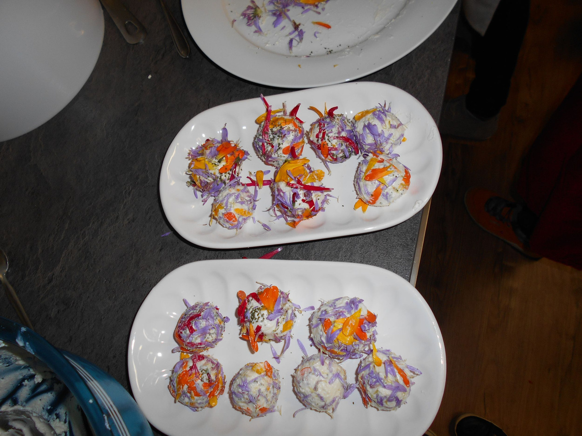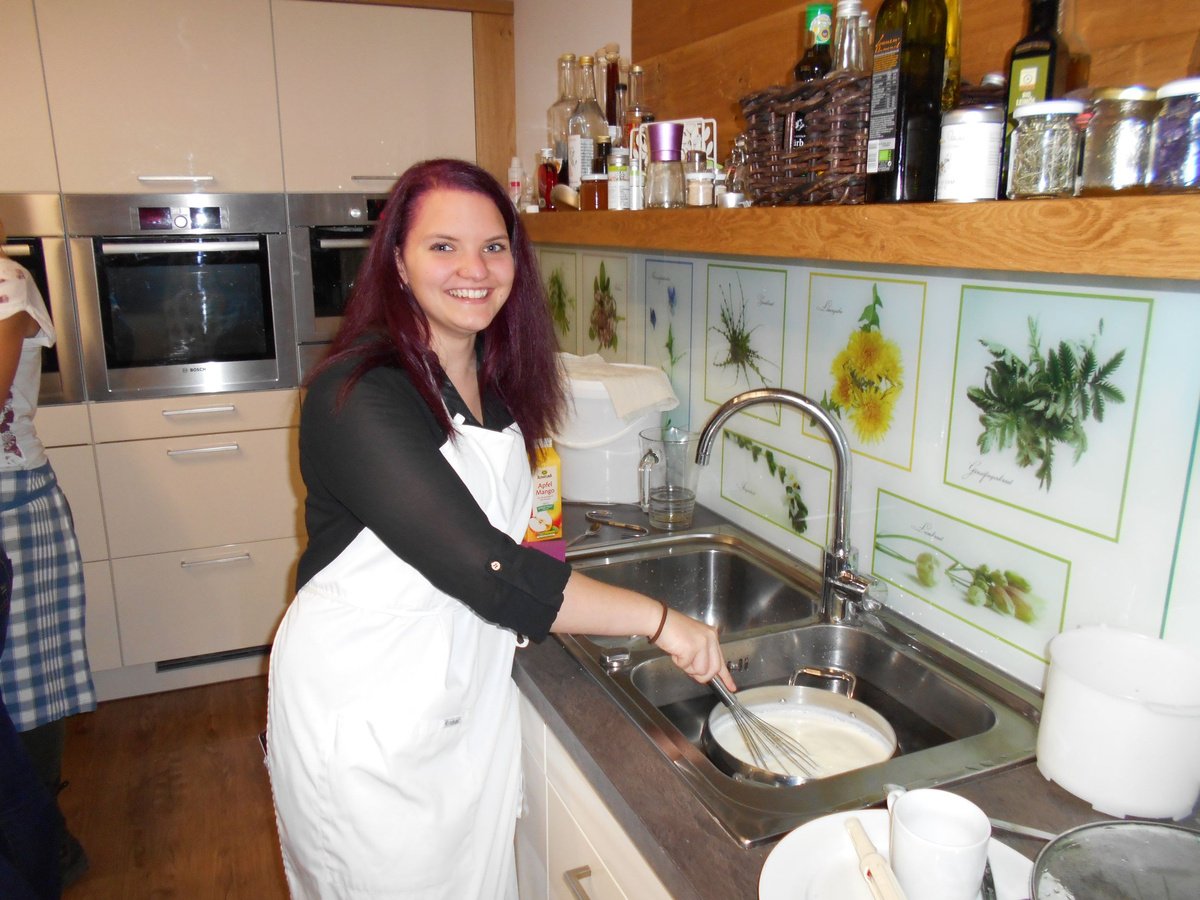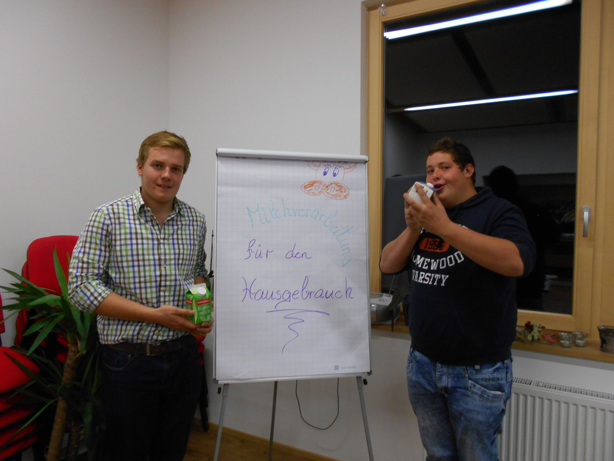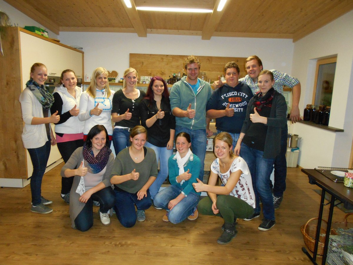 Dann starteten auch wir mit der Arbeit: Gemeinsam bereiteten wir an diesen Abend Frischkäse, Joghurt sowie Topfen zu. Anschließend probierten wir die Produkte im Rohzustand sowie die Molke, die entsteht, wenn Käse produziert wird. Danach verarbeiteten wir unseren Käse zu eingelegten Ölkäse mit Kräutern, Topfen zu verschiedensten Aufstrichvariationen und Joghurt zu köstlicher Trinkjoghurt. Als alles fertig war, haben wir unsere fertigten Produkte natürlich auch probiert. Wir waren alle sehr begeistert von diesem Abend. Als kleines Geschenk haben alle Teilnehmer ein Gläschen von dem selbstgemachten Ölkäse mit nach Hause nehmen dürfen. Ein großes Dankeschön geht natürlich an Heidi Huber, die wir bei unserem nächsten Kurs – dem Brotbackkurs – wieder besuchen dürfen.