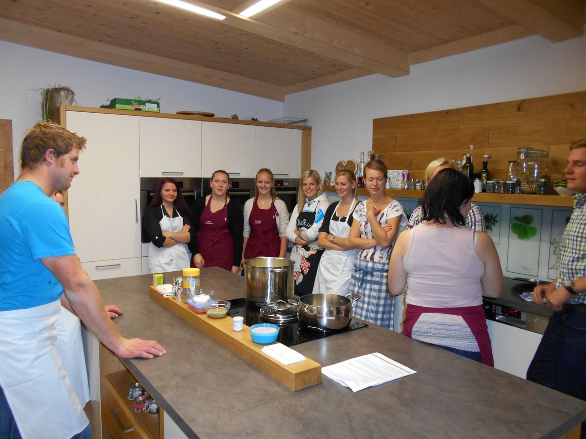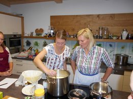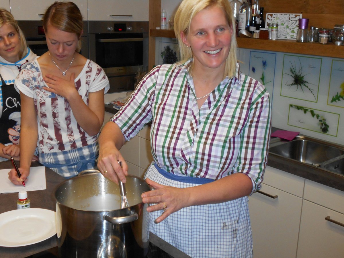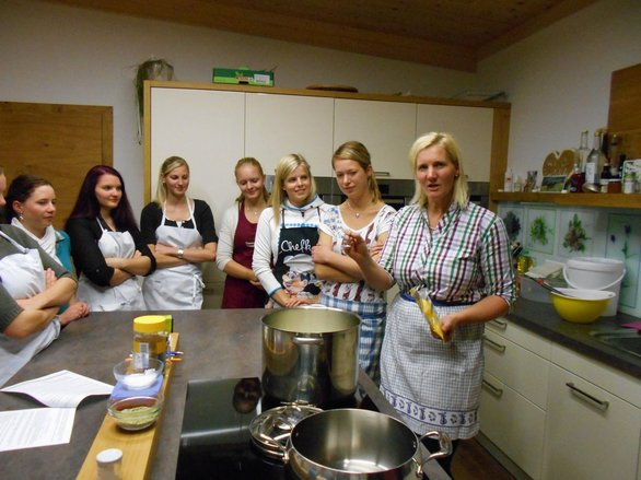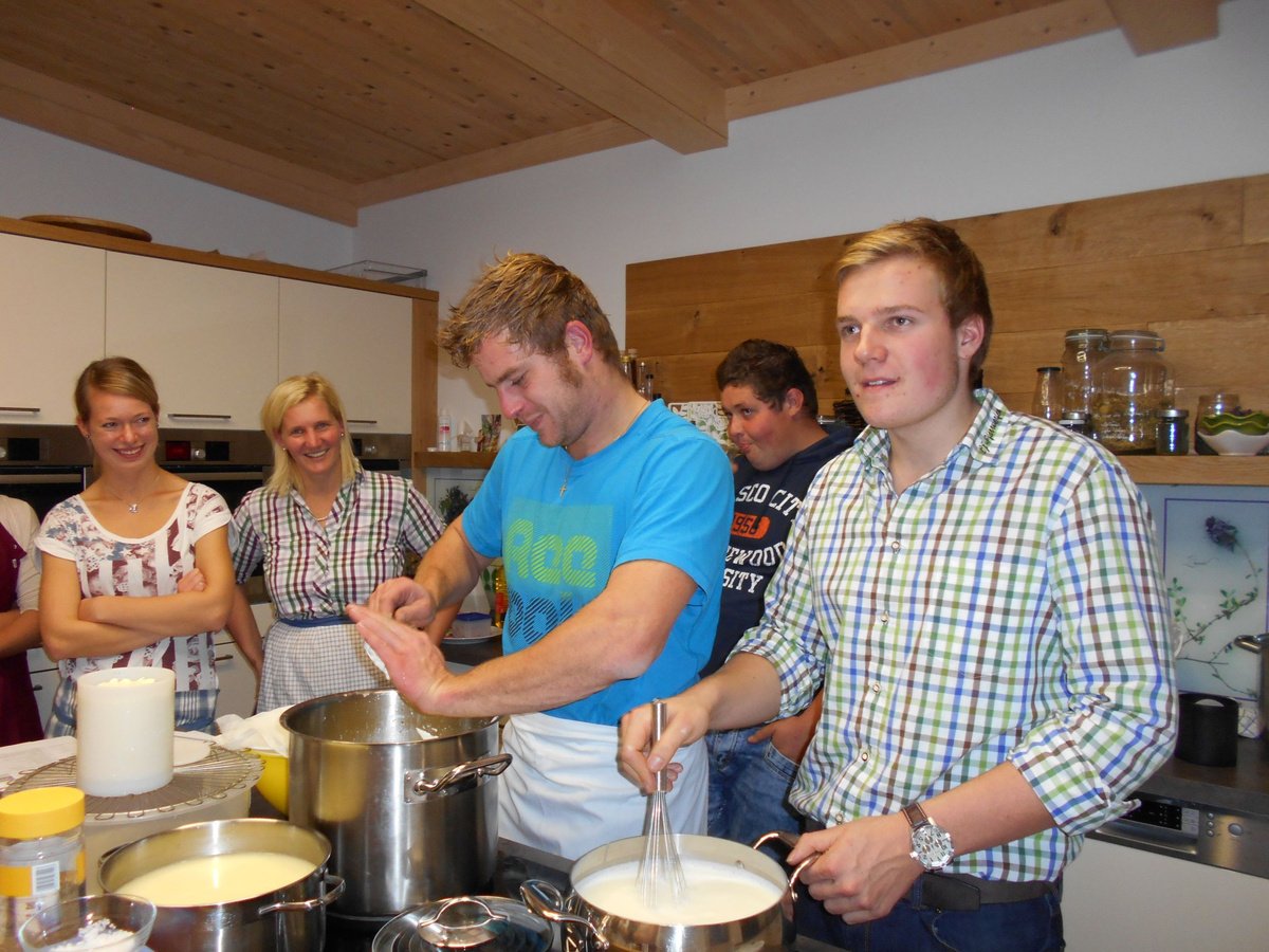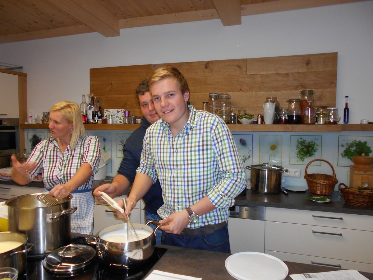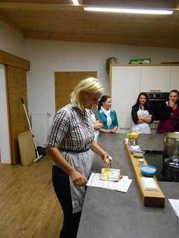 Milch und Milchprodukte sind ein unverzichtbarer Bestandteil unserer Ernährung. Wie die Herstellung von Joghurt, Topfen und Frischkäse funktioniert und welche Produkte daraus erzeugt werden können, haben wir am 15. Oktober 2015 bei Heidi Huber in Bad Hofgastein gelernt. Voller Motivation trafen sich 11 PongauerInnen sowie 2 Lungauerinnen um 18.30 Uhr bei Heidi Zuhause zum Milchverarbeitungskurs. Zu Beginn hat uns Heidi einiges über sich und den Hof erzählt und wie sie zu ihrer heutigen Tätigkeiten gekommen ist. Seit 2012 ist diese auch gelernte Kräuterpädagogin. Anschließend erklärte sie uns, welche Menge an Lab und Kulturen bei der Joghurt-, Topfen- und Frischkäseherstellung benötigt wird.