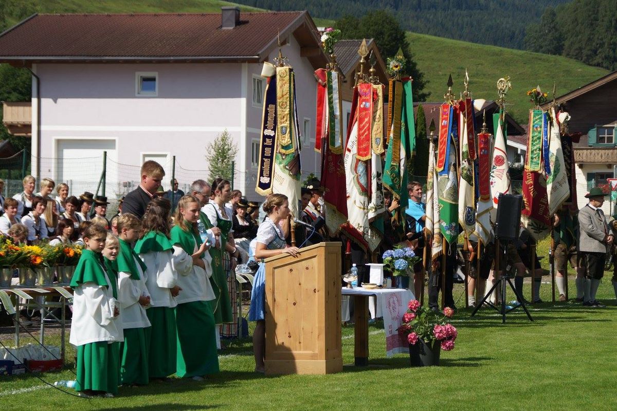 Im Jahre 1966, genau vor 50 Jahren, wurde die Landjugend Leogang gegründet. Das ist ein Grund zum Feiern: So organisierte die Ortsgruppe von 23.07. - 24.07.2016 ihr Jubiläumsfest, zu dem sie Jung und Alt zum Mitfeiern einlud. Zunächst wurde das Jubiläumswochenende mit dem Festabend am Samstagabend eröffnet. Für den richtigen Schwung und gute Unterhaltung sorgte „Spatzensound“. Am Sonntag versammelten sich anschließend die heimischen Vereine sowie Landjugendgruppen aus Nah und Fern zur feierlichen Feldmesse mit anschließendem Festakt und Umzug. Die 26 versammelten Vereine wurden anschließend beim Frühschoppen der Musikkapelle Leogang und der jungen Oberkrainer- und Tanzmusikgruppe „Krainerwind“ bestens unterhalten.