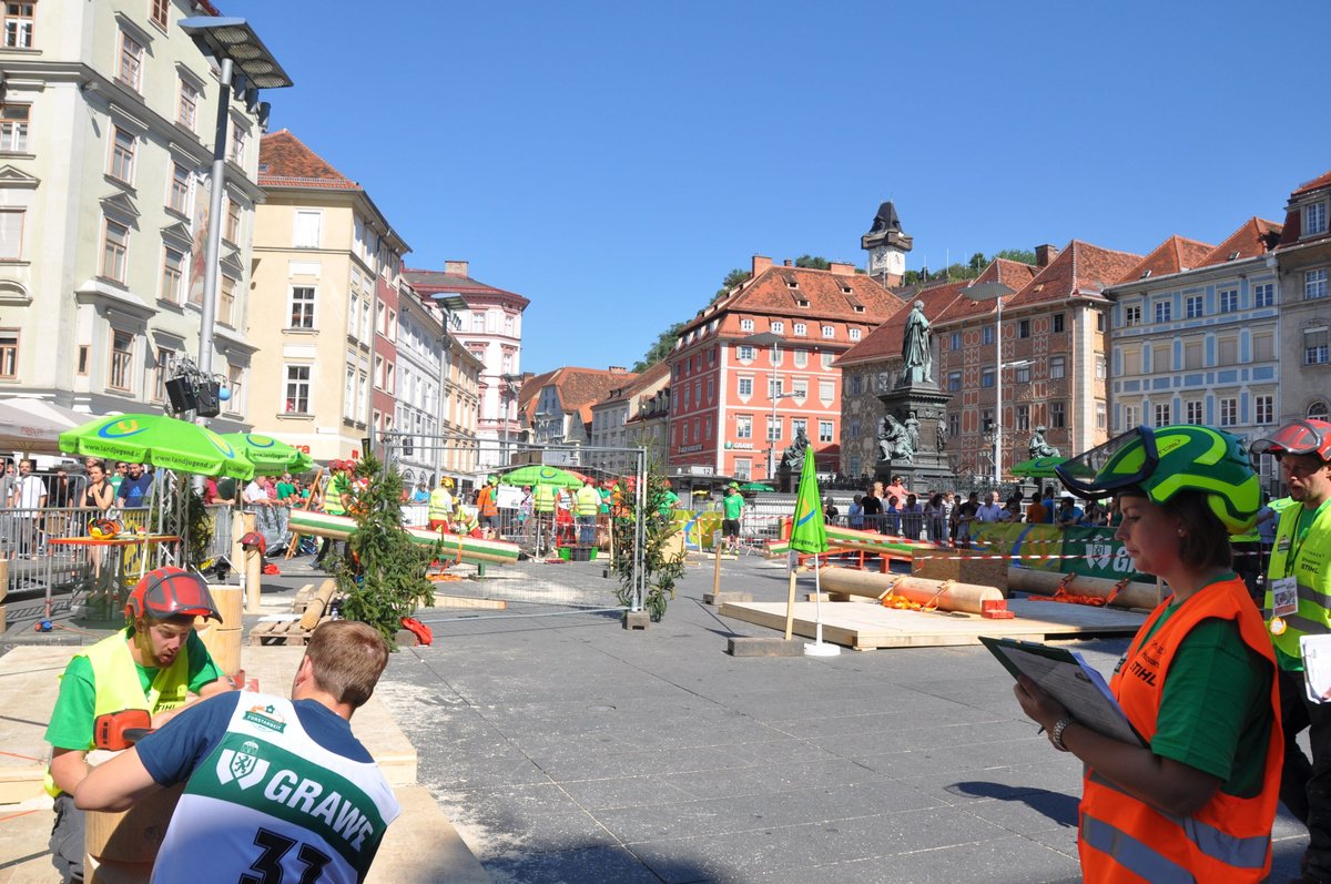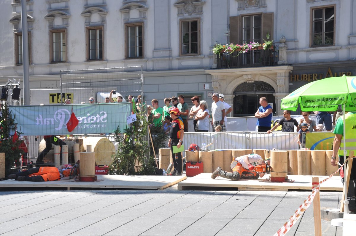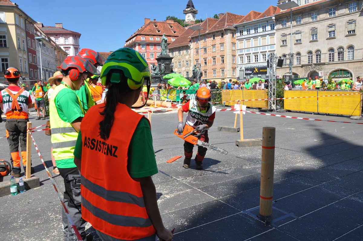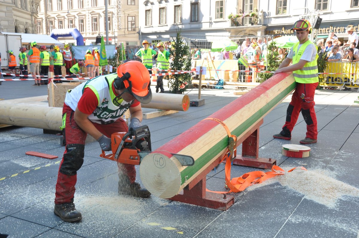 Am 29. August ging es in Graz nicht nur ob der Temperaturen heiß her. In einem spek-takulären Wettbewerb ermittelten die besten Forstwettkämpfer Österreichs am Grazer Hauptplatz ihre Champions. Im Landjugend-Bewerb kamen die Sieger aus Tirol und Kärnten.
