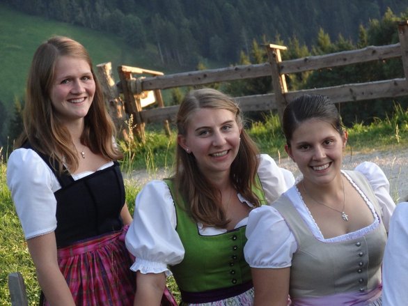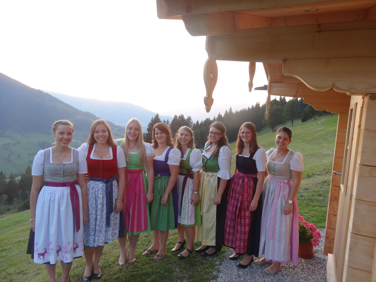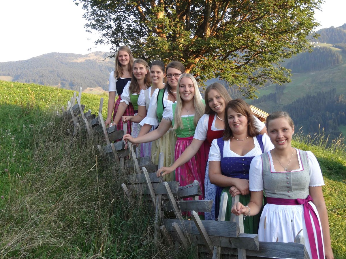 Der Startschuss folgte am 12. Juli 2015. An diesem Tage trafen sich die neun Ladies mit Schneidermeisterin und Fachlehrerin der HWS Bruck, Maria Geisler. Am ersten Abend wurden die Wünsche erhoben und die Stoffe, sowie die Schnitte vorbereitet. „Ein bisschen Hausübung gehört dazu. Schließlich braucht es über 50 Stunden bis ein Dirndlgwand fertig ist, “ gab Maria Geisler gleich zu Beginn die Marschroute vor. Wenn man die eigenen Ideen umsetzen kann, dann kommen tolle Ergebnisse hervor. „Ab und zu wird auch das Nervenkostüm strapaziert, wenn das Nähen gerade mal nicht so funktioniert wie gewünscht“, so Katharina Langreiter, Ortsgruppenleiterin der Landjugend Bruck und fügt hinzu, dass „Maria gleich zu Hilfe war und Fehler relativ schnell aufgetrennt und neu vernäht werden konnten.“ Der Spaß und die Freude am eigenen Dirndl zu nähen kam jedoch nie zu kurz und so wurden auch die ein oder anderen Damengeschichten ausgetauscht. An insgesamt 10 Abenden stellten die neun Teilnehmerinnen ihr Dirndlgewand fertig und können das Prunkstück nun mit Stolz tragen. Der Dirndlnähkurs ist nur einer aus den vielen Kreativ-Workshops „Kunterbunt durchs Jahr“, die jeder Ortsgruppe des Bundeslandes zur Verfügung stehen. Noch heuer stehen Fähnrichschulungen und Bindekurse auf dem Pinzgauer Bildungsprogramm!