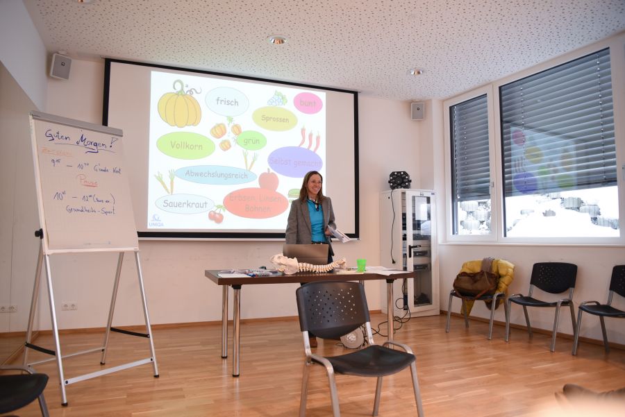 „Rund um gesund“ lautete der Titel des zweiten Kurses. Interessante Fakten über den menschlichen Organismus und Metabolismus (Stoffwechsel), Stärkung der Muskulatur und Wirbelsäule sowie einfache Tipps und Tricks für eine alltägliche Fitness standen an der Tagesordnung. Dabei wurden nicht nur die wichtigsten Einflussfaktoren auf unsere Gesundheit herausgehoben, sondern auch, wie anhand dieser und der Ernährung der Alltagsdruck beeinflusst werden kann. „Jede Person verträgt ein anderes Maß an Stress. Denn während die einen Stress brauchen, um Leistung zu zeigen, reagieren die anderen empfindlicher auf Belastungssituationen. „Die Frage: Wie können Schule/Arbeit, Aufgaben zu Hause und ehrenamtliche Funktionen unter einen Hut gebracht werden? waren zentrale Themen“, hebte Referentin und UNIQA VitalCoach Margret Hirschegger hervor.
