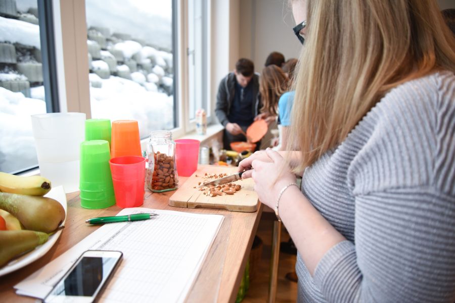 Bei Referentin Cornelia Fischberger lautete das Prinzip des Workshops „Impro-Theater“: Wer spontan ist und sich selbstbewusst gibt, überzeugt! Mit vielen praktischen Übungen erlernten die TeilnehmerInnen die optimale Kombination zwischen dem persönlichen Auftritt und der Dynamik in einer Gruppe. Während der einzelnen Sketches wurden die Jugendlichen in den unterschiedlichsten Situationen in all ihrer Schlagfertigkeit und Kreativität gefordert. Bei Workshop Nummer 4 begaben sich die TeilnehmerInnen auf eine „Kulinarische Weltreise“ mit einem heimischen Lebensmittel, der Milch. In vielen Teilen der Welt ein wichtiges Grundnahrungsmittel, sind Produkte aus Milch für die Gesellschaft nicht mehr weg zu denken und werden nicht nur in der österreichischen Küche gerne verwendet. Gemeinsam erkundeten die TeilnehmerInnen das vielfältige Einsatzgebiet der verschiedensten Milchprodukte und kreierten das Abendessen für die ganze Gruppe.