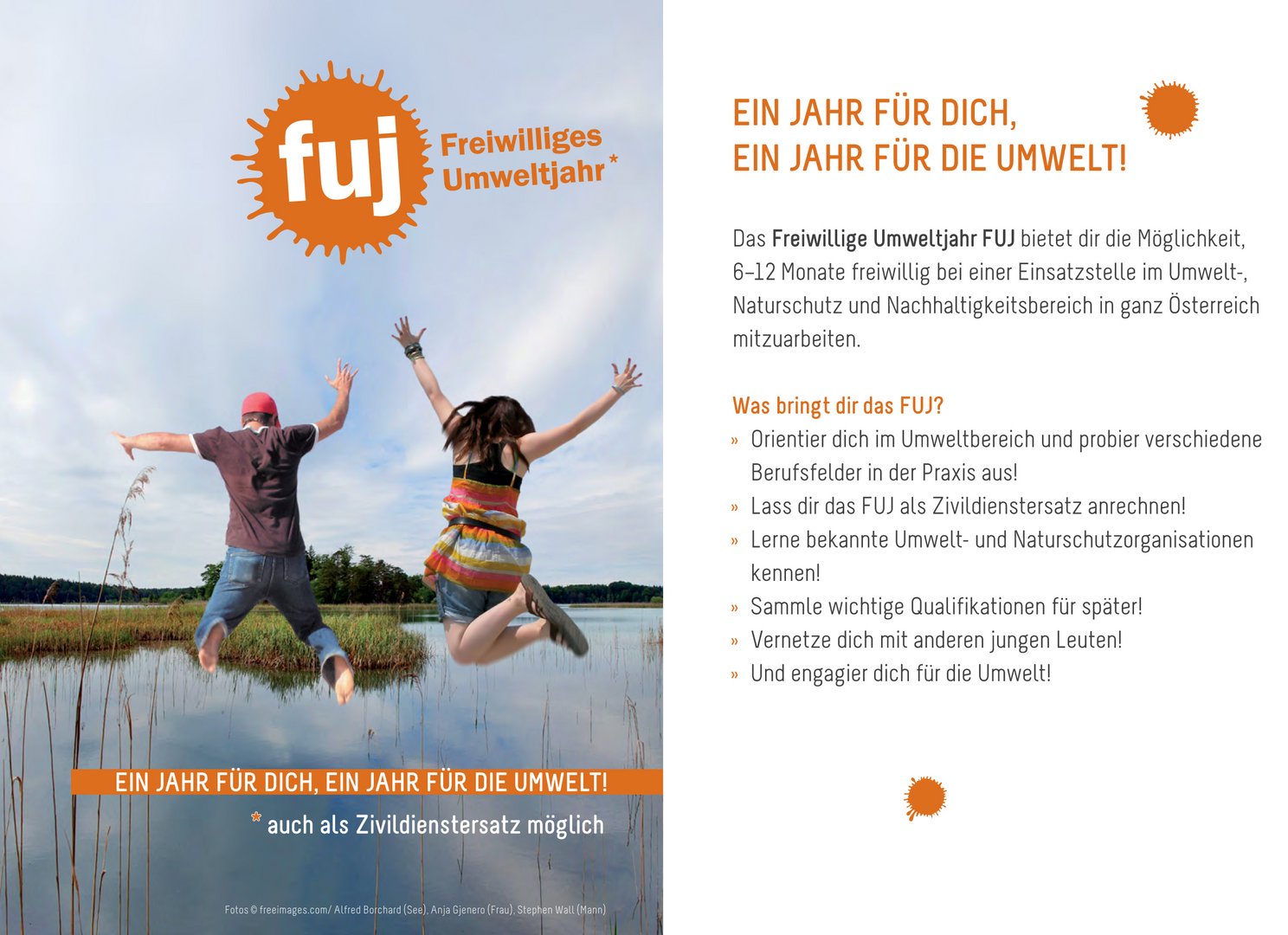 Nähere Infos zum FUJ findest du im Folder, unter www.fuj.at sowie auf www.facebook.com/freiwilligesumweltjahr Für Rückfragen stehen Claudia Kinzl und Sophie Schweiger gerne unter fuj(at)jugendumwelt.at bzw. 01/31304-2012 zur Verfügung.