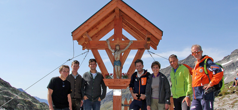 Anlässlich des Zertifikatslehrgangs JUMP der Landjugend Salzburg suchte Projektleiter Daniel Lackner fieberhaft nach einer Projektidee. Da unverhofft ja bekanntlich oft kommt, ergab sich zufällig ein Gespräch mit der örtlichen Bergrettung. Die Kameraden erzählten ihm von der Bergmesse, die am 10. August stattfinden sollte und von dem nicht mehr einwandfreien Gipfelkreuz. Viele Landjugendgruppen im Bundesland erhalten Gipfelkreuze. Dieser Ehre wollte auch die Landjugend Uttendorf so schnell als möglich nachkommen und entschloss sich zur Neuerrichtung des Gipfelkreuzes Kalser-Törl. In kürzester Zeit wurde ein Projektteam zusammengestellt, Ideen gesammelt, das Design überlegt und vor allem der Transport organisiert. Als Chef-Designer des Kreuzes zeichnete sich Christian Schaler, Mitglied der Landjugend und gelernter Zimmerer, aus. Die Besonderheit ist, dass sich zwei Himmelvater-Statuen am Kreuz befinden. Einer ist der Osttiroler Seite ins Kalsertal zugewandt, der andere blickt in die Pinzgauer Himmelsrichtung, ins Stubachtal. Das Kreuz symbolisiert die Demut zur gewaltigen Naturlandschaft in der „weißen Gletscherwelt“ und soll den Schutz vor Naturkatastrophen für die beiden Täler erbitten. „Das Kreuz soll in erster Linie wetterbeständig und möglichst windresistent, sowie langlebig und natürlich schön zum Anschauen sein“, brachte Designer Christian Schaler die Anforderungen auf den Punkt. Der Aufstieg Erstreckte sich auf insgesamt fünf Stunden. Acht Personen halfen Material, Kreuz und Einzäunung auf den Berg zu tragen. Zu Beginn stand noch die Seilbahn Medelzkopf zur Verfügung. Der übrige Weg erfolgte über Stock und Stein, Felsplatten und Schneefelder. Letzteres war eine wahre Herausforderung. Das Gipfelkreuz musste des Öfteren abgeseilt werden. Das Projektteam rund um Projektleiter Daniel Lackner, Designer Christian Schaler, Stefan Enzinger, Michael Renn, Antonn Renn, Lisa Rieder und Carmen Vorreiter leisteten über 400 ehrenamtliche Stunden. Sitzungen, Produktion, Transport und ein Wunsch etwas Einzigartiges und Bleibendes zu schaffen trugen dazu bei, den schönen Gedanken in die Wirklichkeit umzusetzen. Einweihung Das Gipfelkreuz Kalser-Törl wurde feierlich bei der Bergmesse am 10. August eingeweiht. Die Kameraden der Bergrettung Salzburg veranstalten die Messe im Gedenken an den verstorbenen Kameraden Rudi Winter. Knapp 200 Besucher nahmen bei der Messe teil. Auch Vertreter der Politik waren bei der feierlichen Einweihung anwesend. Begrüßt wurden u.a. Landtagspräsidentin Dr.in Brigitta Pallauf, Bürgermeister von Uttendorf Hannes Lerchbaumer und Landesleiter der Bergrettung Salzburg Ing. Estolf Müller. Landtagspräsidentin Brigitta Pallauf lobte das Engagement der Jugendlichen: „Diese Eigenschaften zeichnen das Engagement der Landjugend aus: andere bewegen zu können und andere in Bewegung zu setzen, und dadurch die Fähigkeiten zu entwickeln, etwas zum Guten zu verändern. Ich bedanke mich für das Engagement und die vielen Stunden des Einsatzes. Denn nur gemeinsam kann Vieles erreicht und so Manches bewegt werden. Ich wünsche der Landjugend Uttendorf weiter so viel Schaffenskraft und viele gute Ideen für neue Projekte und vieles zum Guten zu verändern“, so Pallauf. Das Gipfelkreuz Kalser-Törl wird nun von der Landjugend Uttendorf und den Kameraden der Bergrettung betreut und gepflegt. Erreichbar ist es über einen rund drei-stündigen Aufstieg vom Stubachtal über die Medelzkopf-Bahn und anschließenden Fußmarsch.