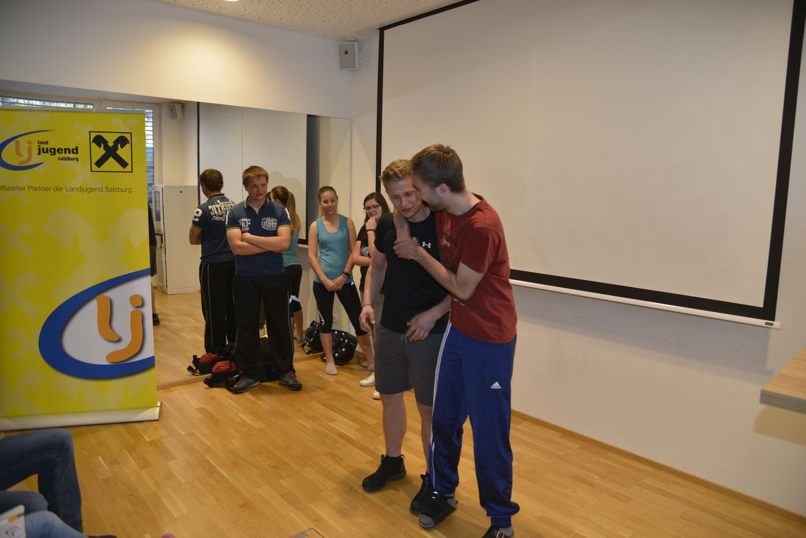 Am 30. und 31. März 2019 fand im Jugendhotel Aicher in Wagrain das alljährliche Ein- und Aufsteigerseminar statt. 65 wissbegierige Jugendliche aus allen Teilen Salzburgs holten sich Wissen und praktisches Know-How in vier verschiedenen Workshops. Mit über 800 gesammelten Bildungsstunden zeigten die Jugendlichen klar, wie wichtig es ist, sich auch außerhalb der Schule, Lehre oder Beruf weiterzubilden. Am ersten Tag wählten die Teilnehmer aus einem der vier Workshops „Gute Fotos leicht gemacht“, „Dein Körper spricht – Was wir ohne Worte sagen“, „Kreatives und alltagstaugliches Restl-Kochen“ und „Outdoor- & Selbstverteidigungstraining“. Ziel der einzelnen Workshops war es, die Kompetenz und Persönlichkeitsentwicklung der Jugendlichen zu fördern. Das neue Wissen und die erlernten Fähigkeiten können nun im Landjugendalltag praktisch umgesetzt werden. Besonders der Workshop „Dein Körper spricht – Was wir ohne Worte sagen“ eröffnete den Teilnehmern wichtige Aspekte für sich persönlich und die Zusammenarbeit in der Landjugend. Keine Sprache ist so elementar wie unsere Körpersprache – und keine ist so ehrlich. „Mit Worten können wir vielleicht jemanden täuschen oder belügen, aber wen überzeugt schon ein aufgesetztes Lachen? Ob wir wollen oder nicht – unser Körper verrät unsere wahren Gefühle und Gedanken“, so Sandra Kaiser, Referentin des Workshops. „Outdoor- und Selbstverteidigungstraining“ lautete der Titel des zweiten Kurses. Interessante Fakten über das Überleben im freien Gelände und einfache Selbstverteidigungsarten standen am Programm. Die Teilnehmer bauten sich im Wald von Wagrain einen Unterschlupf und erkundeten mit Landkarten die Gegend. Auch die richtige Ausrüstung wurde besprochen. Tipps und Tricks vom Experten Alfred Fric durften dabei nicht fehlen. Am Nachmittag folgte ein Selbstverteidigungskurs. So galt es verschiedene Angriffe abzuwehren oder sich aus dem Griff eines Angreifers zu befreien.
