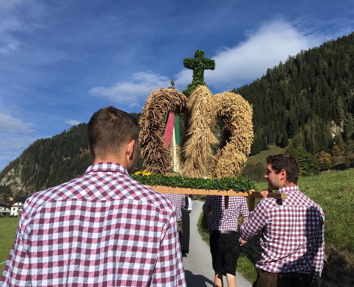 Von Anfang September bis Ende Oktober finden im Salzburger Land zahlreiche Erntedankfeste statt. In vielen Ortschaften wird die liebevolle Gestaltung der Erntekrone Jahr für Jahr von den Salzburger Landjugend-Ortsgruppen übernommen. Die Erntekrone symbolisiert den Dank für ein ertragreiches Erntejahr und wird im Rahmen einer Prozession durch den Ort getragen. Salzburg. Die Erhaltung von Traditionen und Kultur ist den Salzburger Landjugend-Ortsgruppen in den einzelnen Gemeinden besonders wichtig. „Unsere Erntekrone wird mit Zweigen von Preiselbeersträuchern sowie regionalen Getreidesorten aus dem Lungau geschmückt. Dazu gehört Gerste, Hafer, Roggen und Weizen“, erzählt Ortsgruppenleiterin der Landjugend Zederhaus Petra Gruber. Die Erntekrone der Landjugend Zederhaus beinhaltet sechs Stränge. Die Preiselbeersträucher werden kurz vor dem Binden der Krone im Zederhauser Almgebiet gesammelt, Obst und Gemüse werden vom lokalen Nahversorger Bliem zur Verfügung gestellt. Insgesamt 35 Stunden investieren die Mitglieder der Landjugend Zederhaus in die Gestaltung der Erntekrone. „Beim Gestalten der Erntekrone steht für mich die Gemeinschaft und die Zusammenarbeit im Vordergrund. Erntedank hat im Ort einen sehr hohen Stellenwert und wir sind stolz, dieses Fest gestalten zu dürfen“, so Gruber. Kurz vor der Prozession wird die Mitte der Erntekrone mit Gaben aus dem regionalen Ernteertrag geziert. Erntekrone und Erntegaben, Blumen und die Früchte des Gartens werden anschließend in einem Festzug bei der kirchlichen Prozession mitgeführt und gesegnet. Der Transport der Erntekrone erfolgt entweder auf einem Wagen, gezogen von Rössern aus der heimischen Bauernschaft, oder per Hand. Das Erntedankfest wird in vielen Gemeinden als Fest der Dorf- oder Pfarrgemeinschaft, das oft mit einem Kirtag, Bauernherbst oder mit einem Pfarrfest kombiniert, gefeiert.