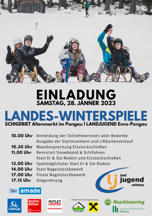 Nicht mehr lange lässt das erste sportliche Highlight im neuen Jahr auf sich warten - die Landes-Winterspiele! Zu diesem Bewerb lädt die Landjugend Salzburg herzlich ein.