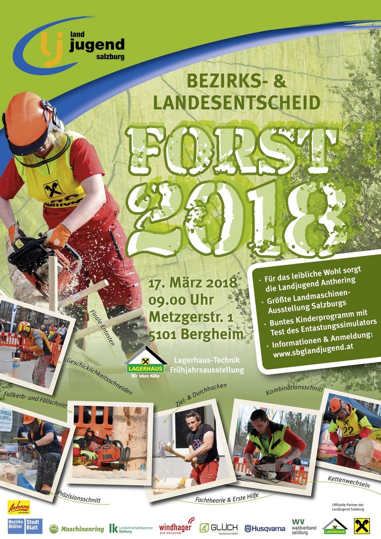 Heiße Duelle und ein spannender Wettkampf sind am Samstag, den 17. März 2018 beim Bezirksbewerb Flachgau und dem Landesforstwettbewerb der Landjugend Salzburg garantiert. Salzburgs beste Jugend-Motorsägenakrobaten kämpfen um den Landesmeistertitel. Um was geht’s? Die Forstwirtschaft hat lange Tradition in Salzburg. Beim Forstwettbewerb haben junge interessierte Mitglieder die Möglichkeit sich mit der Motorsäge zu beweisen. Ganz egal wo das persönliche Niveau angesiedelt ist, der Spaß und die Konkurrenz zu Gleichgesinnten steht im Vordergrund.