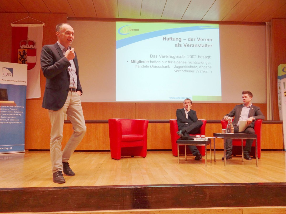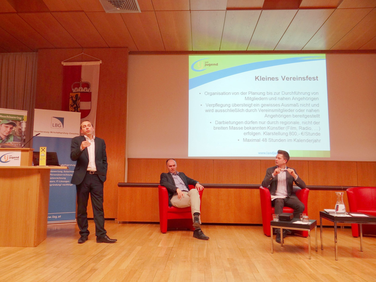Bei Anfragen seitens der Finanz ist es wichtig, das Landjugendreferat kontaktiert, damit der Kontakt zu Fachexperten hergestellt werden kann. „Einiges lässt sich relativ einfach lösen und kann im Vorfeld entkräftet werden. Vorsicht ist natürlich besser als Nachsicht, “ so Traintinger. Nach den Inputs der beiden Vortragenden startete eine rege Diskussion zwischen Funktionären und den Referenten. Vieldiskutiertes Thema war die Registrierkasse, die für kleine Vereinsfeste jedoch nicht benötigt wird. Indikatoren für kleine Vereinsfeste sind u. a. die bereits genannten maximalen Ausschankzeiten sowie Unterhaltungsmusikgruppen, die üblicherweise (dh. nicht nur für das konkrete Landjugendfest) weniger als EUR 1.000 Stundengage erhalten. Für große Vereinsfeste gilt die volle Steuer- und die damit verbundene Registrierkassenpflicht.