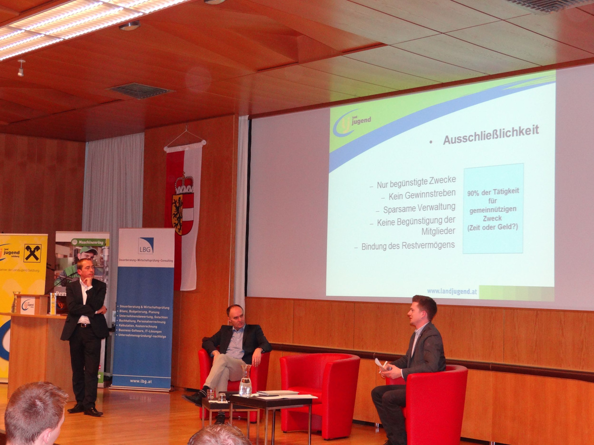 Salzburg, Heffterhof. „Die Gemeinnützigkeit ist das ausschlaggebende Faktum, warum Vereine, wie die Landjugend oder Musikvereine, Steuerbegünstigungen erhalten“, so Reinhard Polsterer, Geschäftsführer der Landjugend Niederösterreich in seinem Vortrag. Reinhard Polsterer ist seit knapp 20 Jahren im Landjugendreferat Niederösterreich als Geschäftsführer tätig und gab den interessierten TeilnehmerInnen seine Erfahrungen weiter. "Der Erhalt der Gemeinnützigkeit und die Durchführen eines dementsprechenden Jahresprogrammes ist eines der wichtigsten Dinge, um sich steuerrechtlich abzusichern, “ so Polsterer. Als Experte für die finanztechnischen Angelegenheiten wurde der Leiter der LBG-Salzburg, Mag. (FH) Martin Traintinger eingeladen. Er wies auf die Registrierkassenbefreiung für kleine Vereinsfeste hin. „Die Ausschankzeiten eines Vereines dürfen 48 Stunden pro Jahr nicht überschreiten. Wenn man z.B. ein Jubiläumsfest plant, sollte man aufpassen, dass man in dem Jahr durch die Durchführung eines Maibaumfestes oder Dorfmarktes diese Regelung nicht überschreitet, “ erläuterte Martin Traintinger die Thematik in seinem Vortrag.