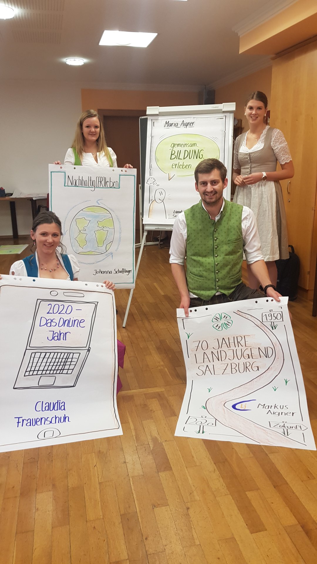 Landesleiterin Johanna Sachafflinger (Landjugend Gastein), Landesobmann Markus Aigner (Landjugend Eugendorf), Landesleiterin-Stv. Claudia Frauenschuh (Landjugend Neumarkt) und Ortsgruppenleiterin Maria Aigner (Landjugend Seekirchen) vertraten das Bundesland Salzburg bei dieser Fortbildung. Sinnvolle Projekte die den ländlichen Raum bereichern und dabei auch noch persönlichj sehr viel lernen. Das wurde von den TeilnehmerInnen umgesetzt