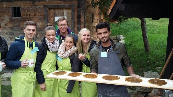 Die zweite Veranstaltung stellte einen kleinen Teil der österreichischen und syrischen Kulinarik in den Mittelpunkt: Unter fachkundiger Anleitung einer Bischofshofener Bäuerin und Kochlehrerin durften wir österreichisches Bauernbrot und Germteigschnecken backen. Danach zeigten uns die Flüchtlinge, wie man arabisches Fladenbrot zubereitet. Ein Nachmittag, der neben dem Teigwalken die Gelegenheit bot, sich mit den Flüchtlingen zu unterhalten. Natürlich wurden die Köstlichkeiten bei einer anschließenden Jause freudig verspeist.