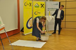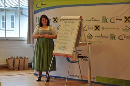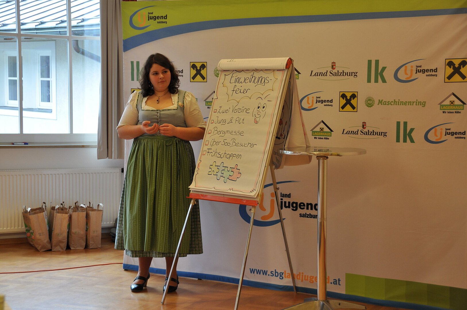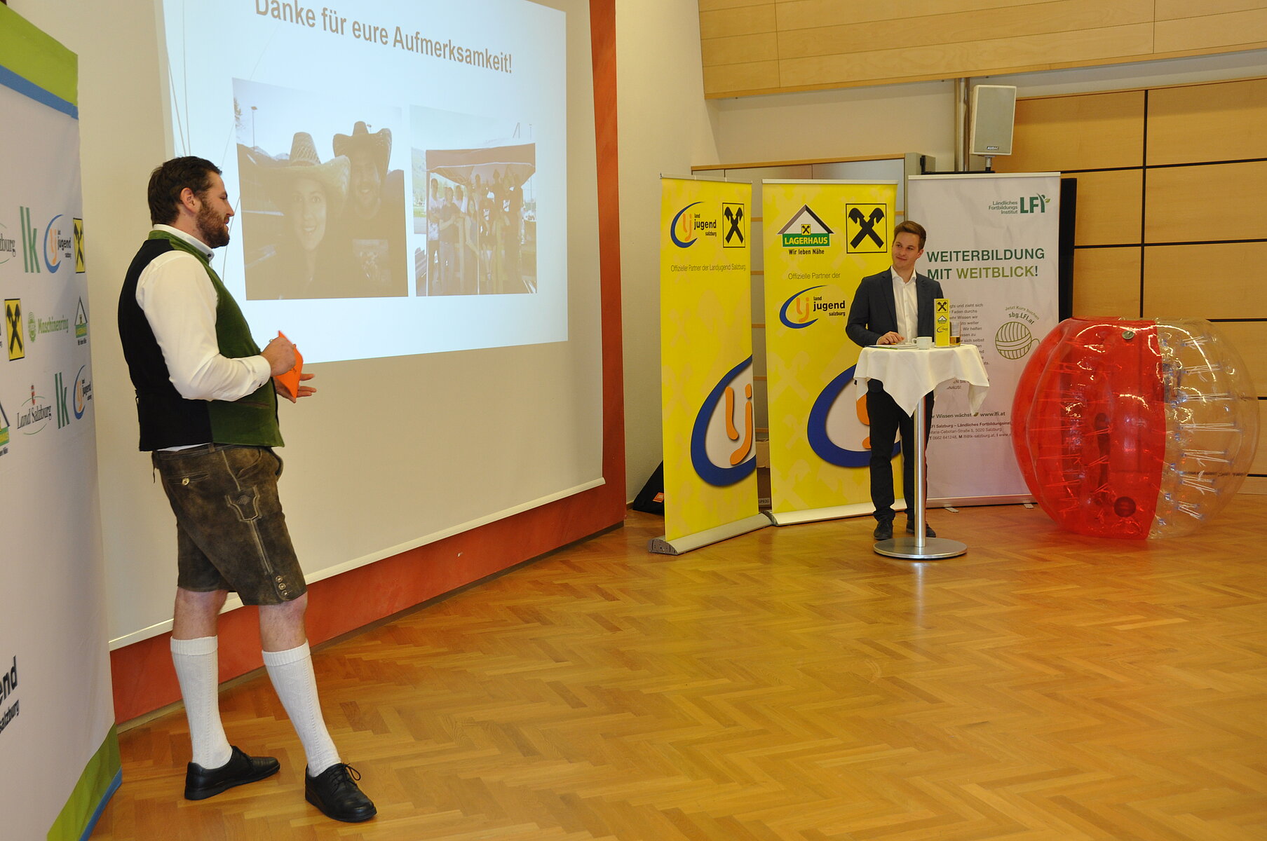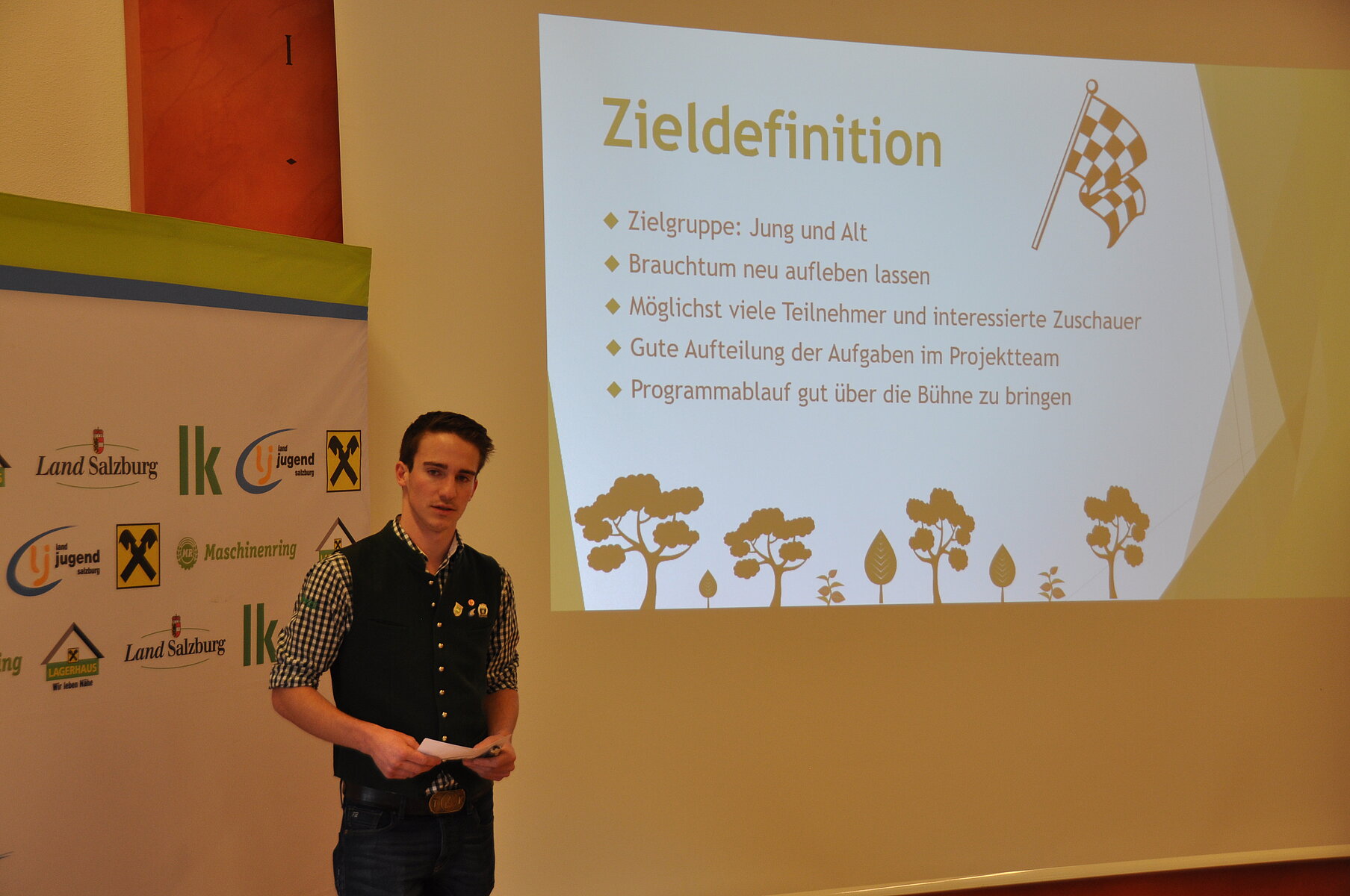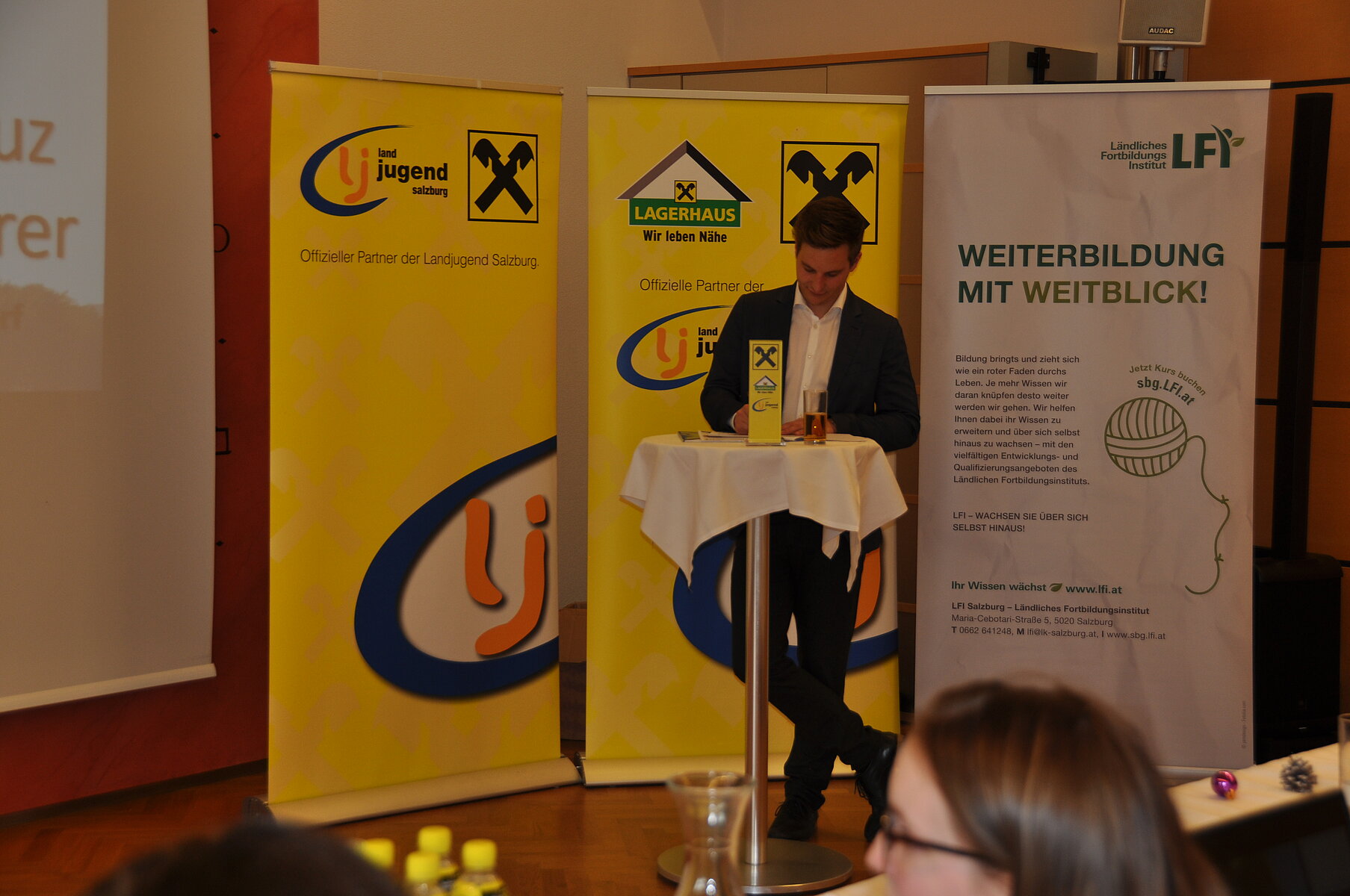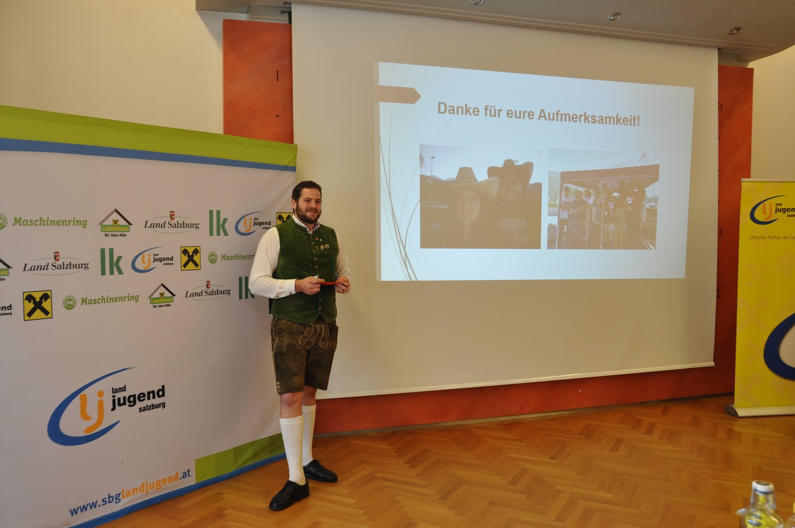Parallel zur Landesprojektpräsentation fand die Abschlusspräsentation des LFI-Zertifikatslehrganges JUMP (Junge, Unschlagbar Motivierte Persönlichkeiten) statt. 9 Absolventen präsentierten dabei ihr durchgeführtes Projekt. Auf vier Module aufgebaut, beschäftigt sich JUMP mit Rhetorik und Teambildung, mit Projektmanagement, Öffentlichkeitsarbeit und Veranstaltungsplanung. Der Lehrgang umfasst 83 Unterrichtseinheiten. Elisabeth Weilbuchner, Geschäftsführerin der Landjugend Salzburg und Basistrainerin, freut sich über die hervorragenden Abschlusspräsentationen: „Es ist schön anzusehen, wenn die gelernten Inhalte erfolgreich umgesetzt und präsentiert werden. Besonders wenn so hervorragende Projekte aus einem Lehrgang entstehen.“