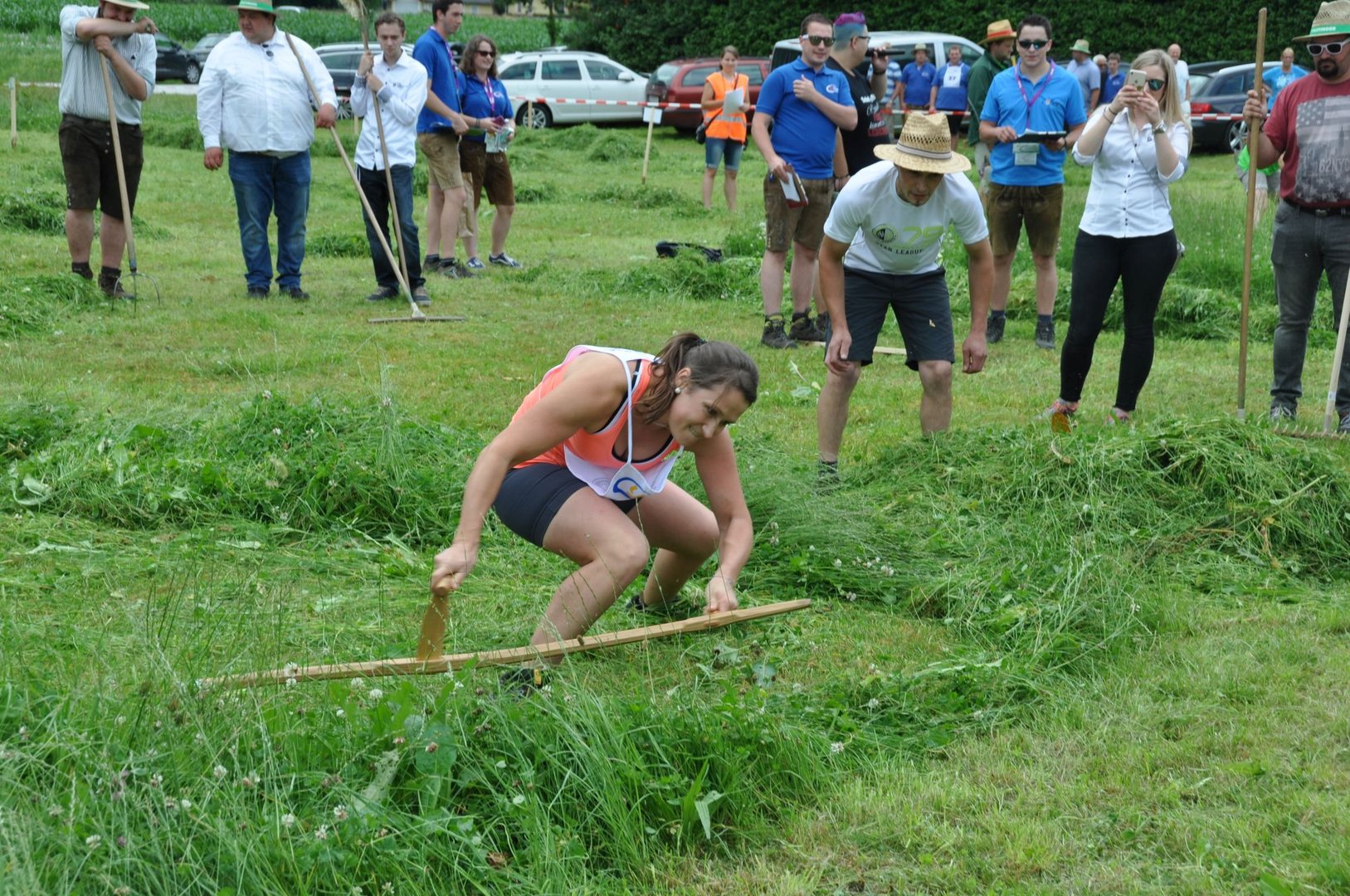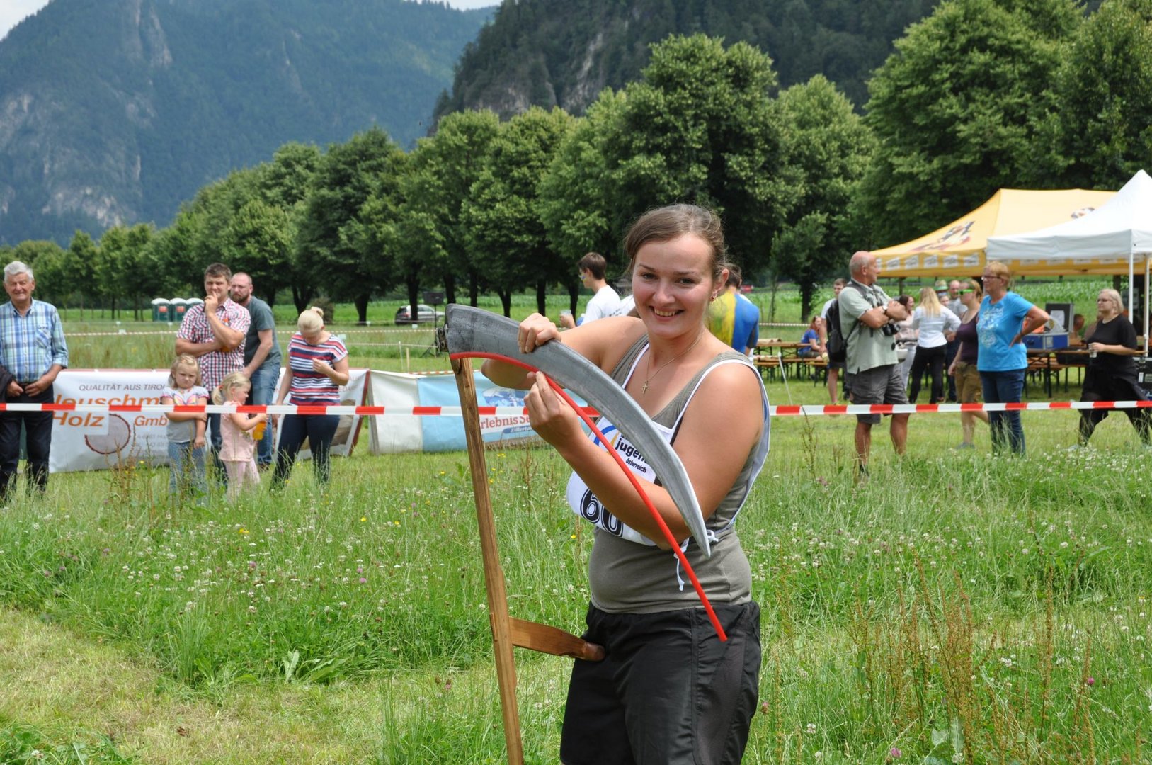 Von 6. – 8. Juli 2018 fand der Bundeswettbewerb im Handmähen an der LLA Rotholz in Tirol statt. Das Salzburger Mäherteam konnte dabei mit einer Goldmedaille, einer Silbermedaille und 5 Top-Ten Platzierungen aufzeigen. Gold für die amtierende Europameisterin Elisabeth Schilcher aus Köstendorf Strass im Zillertal. Regen am Vortag, schwüle Temperaturen und ein sehr dichter Bestand machten die Bedingungen für die TeilnehmerInnen des diesjährigen Bundesentscheides nicht gerade einfach. „Wenn der Bestand so dicht ist, dann ist das Mähen sehr kräftezehrend. Da braucht man eine extra gute Schneid und viel Kondition“, so Elisabeth Schilcher. Aus Salzburger Sicht kam sie mit den Bedingungen am besten zu recht. In eindrucksvoller Manier und einer Zeit von 1 Minute und 14 Sekunden für 35 Quadratmeter eroberte sie den Bundesmeistertitel in der Kategorie Profiklasse. In dieser Klasse kann die Sensenblattlänge frei gewählt werden. Bei Schilcher beträgt diese ca. 125 cm.