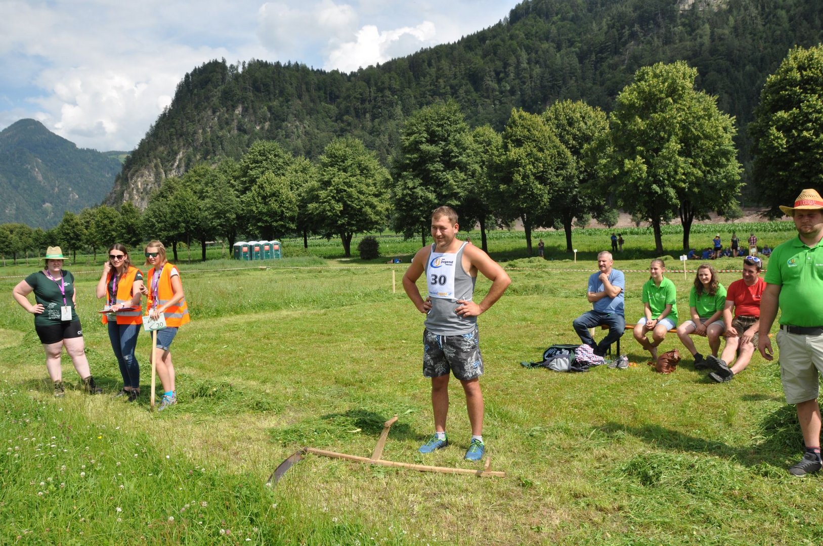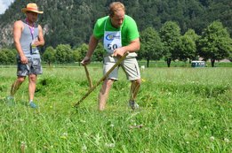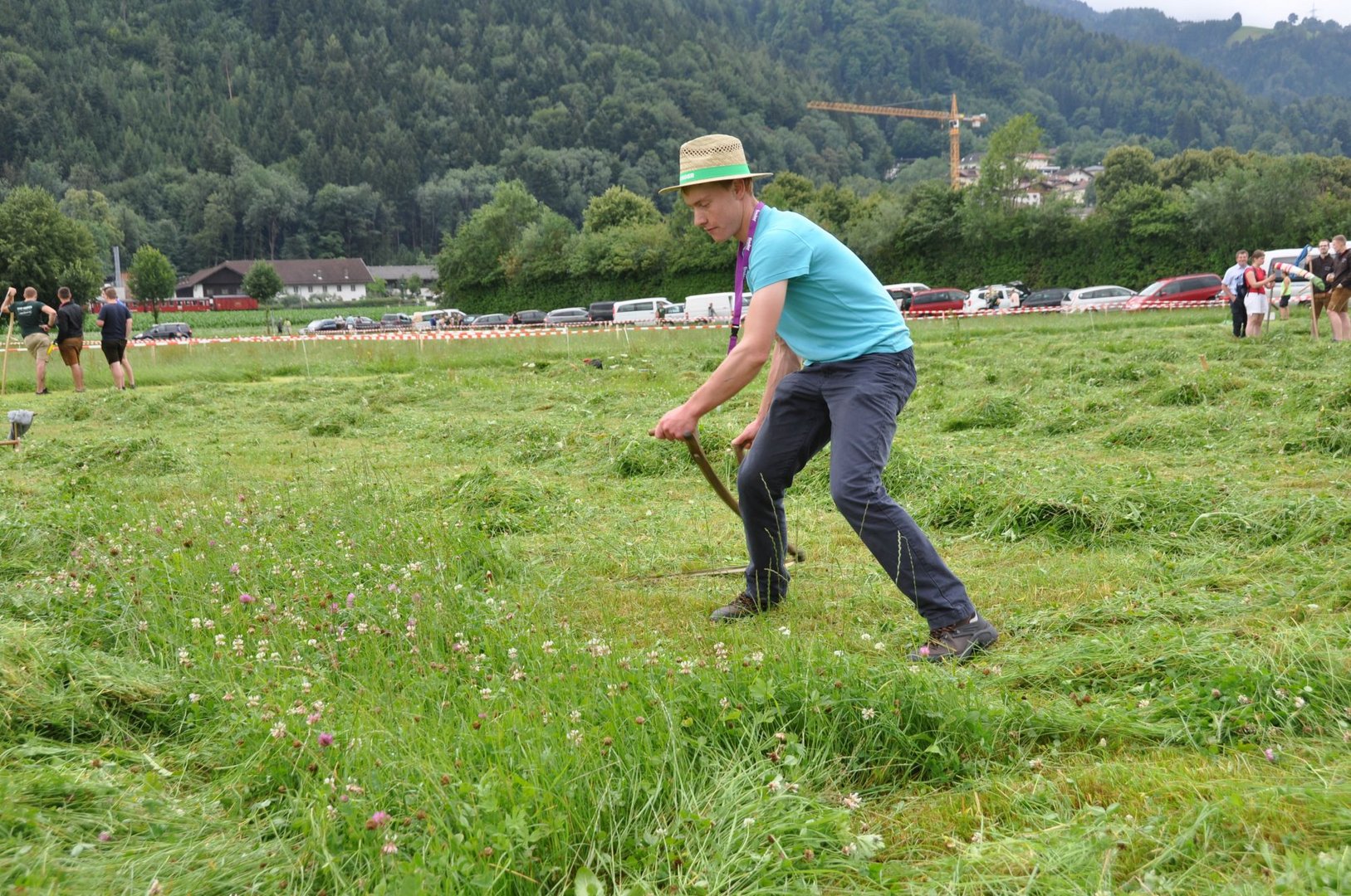 Vize-Bundesmeister Franz Erbschwendtner Die zweite Medaille für Salzburg ging ebenfalls in den Flachgau, genauer gesagt nach St. Georgen. Franz Erbschwendtner mähte seine 100 Quadratmeter große Fläche in weniger als drei Minuten und konnte sich so den 2. Rang hinter Hubert Riedl (Oberösterreich) sichern. „Ich bin mit einer sehr niedrigen Erwartungshaltung hingefahren, da in der Kategorie Burschen über 29 Jahre nahezu alle ein oder sogar schon mehrere Male bei der Europameisterschaft teilgenommen und Top-Plätze erreicht haben. Umso mehr hat es mich dann gefreut, dass ich den 2. Platz erringen konnte.“, so Erbschwendtner. Auf die Frage hin, wie seine Vorbereitungen ausgesehen haben, antwortete er: „Die letzten Monate hab ich mit ein bis zwei Mal pro Woche mit Bernadette Bamberger, Matthias Huber, Elisabeth und Johannes Schilcher getroffen um zu trainieren. In den letzten zwei Wochen haben wir dann täglich gemäht. Was mir auch sehr geholfen hat ist die Tatsache, dass ich zu Hause am eigenen Betrieb bin und so die tägliche Arbeit das Krafttraining ersetzt.“