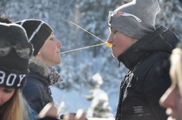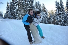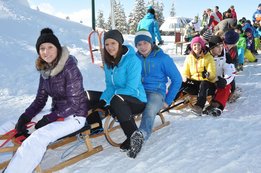 Mehr als 300 Rodelpaare wagten sich bei den heurigen Winterspielen an die Mittelzeit. Über die 7km lange Rodelstrecke ging es nach Altenmarkt. Die Landjugend Enns-Pongau verkürzte den Weg mit lustigen Stationen zwischendurch. So mussten beispielsweise Penne-Nudeln über Spagetti weitergegeben werden oder ein kurzes Stück weg zu zweit und mit jeweils einem Fuß in einem Sack zurückgelegt werden. Das meiste Gefühl für die Mittelzeit von 0:42:42 bewiesen Katharina Döringer und Alois Fankhauser von der Landjugend Taxenbach. Mit nur einer Sekunde Rückstand dominierten sie das Er & Sie Rennen. Dicht auf den Fersen waren ihnen dabei Katharina Moser und Georg Höller von der Landjugend Piesendorf (2.) und die Thalgauer Elisabeth Wörndl und Florian Nußbaumer.