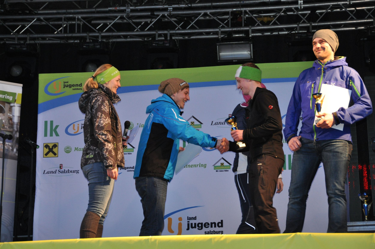 Tourenskirennen Knapp 20 sportbegeisterte Damen und Herren folgten der Einladung zum zweiten Tourenskirennen der Landjugend Salzburg. 800 Höhenmeter auf 7,5 km bis zur Mittelstation der Wildkogelbahnen und die darauffolgende Abfahrt waren zu meistern. Viel Zeit ließen sich die SportlerInnen nicht. Bereits nach 55:29min war der Sieger schon wieder im Ziel. Rupert Mairhofer von der Landjugend Bischofshofen setzte sich eindrucksvoll an die Spitze des Klassements. Der Fight um den zweiten Rang fiel hart aber fair, mit einem wahren Fotofinish, aus. David Weberbauer, Martin Reindl (beide Landjugend Kuchl) und Wolfgang Schmuck (Landjugend Unken) kamen fast zeitgleich ins Ziel und matchten sich in tiefer Abfahrtshocke um die Podestränge. Knapp vor dem Ziel konnte David Weberbauer Martin Reindl überholen und holte damit den zweiten Rang. Wolfgang Schmuck belegte den hervorragenden 4. Rang. Das Trio kam mit einer Laufzeit von 56:09min ins Ziel. Mit einer tollen Zeit von 1:20:22 gewann Michaela Zehentner von der Landjugend Saalfelden die Damenklasse.