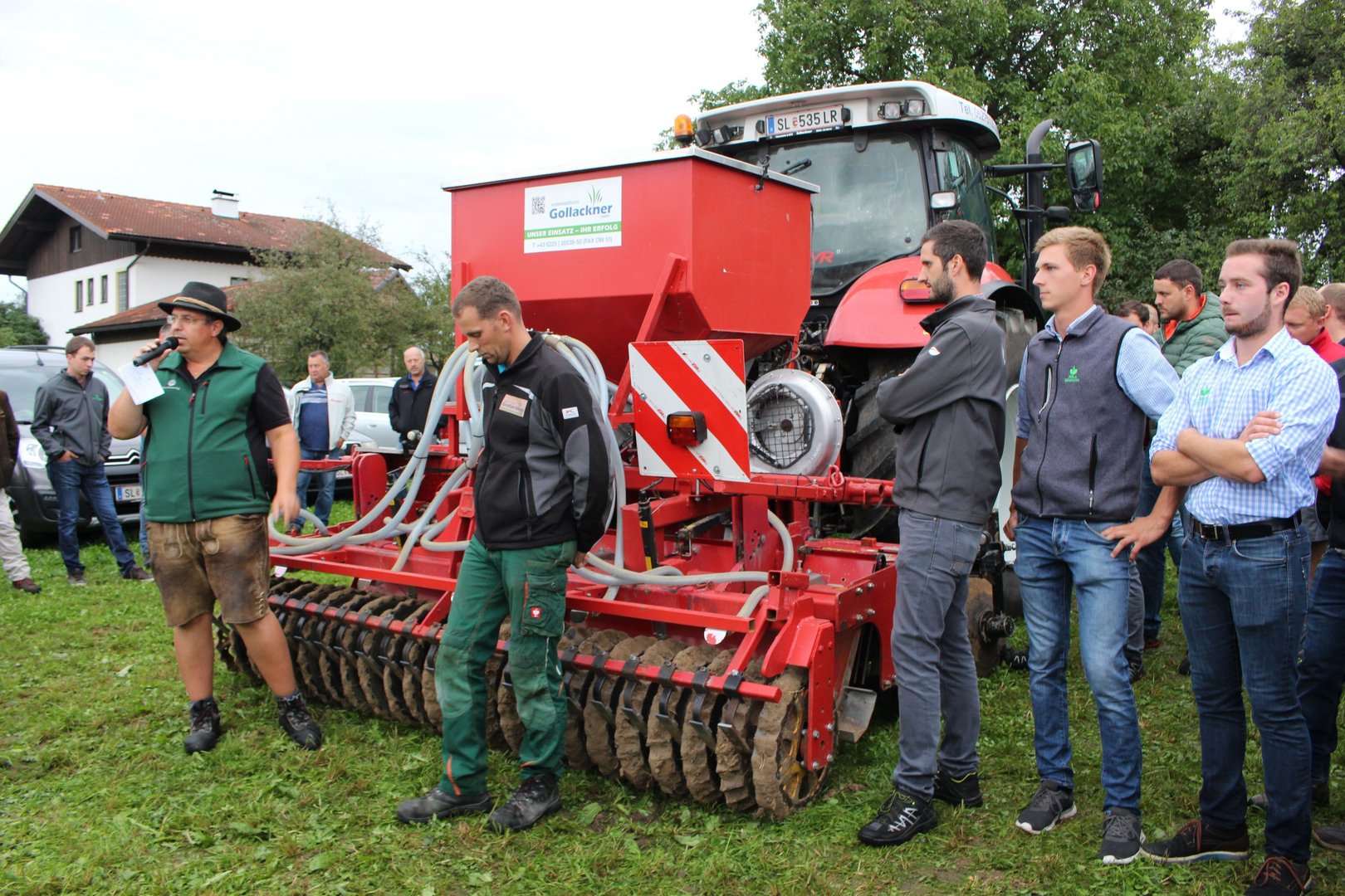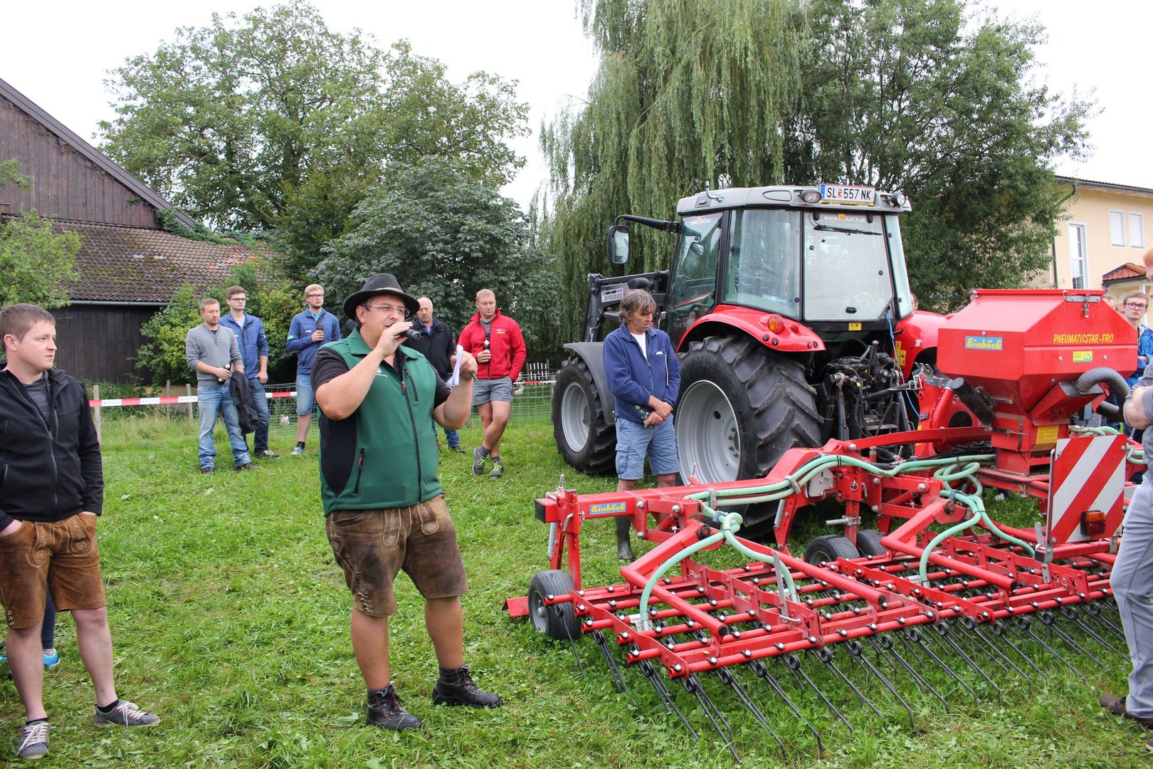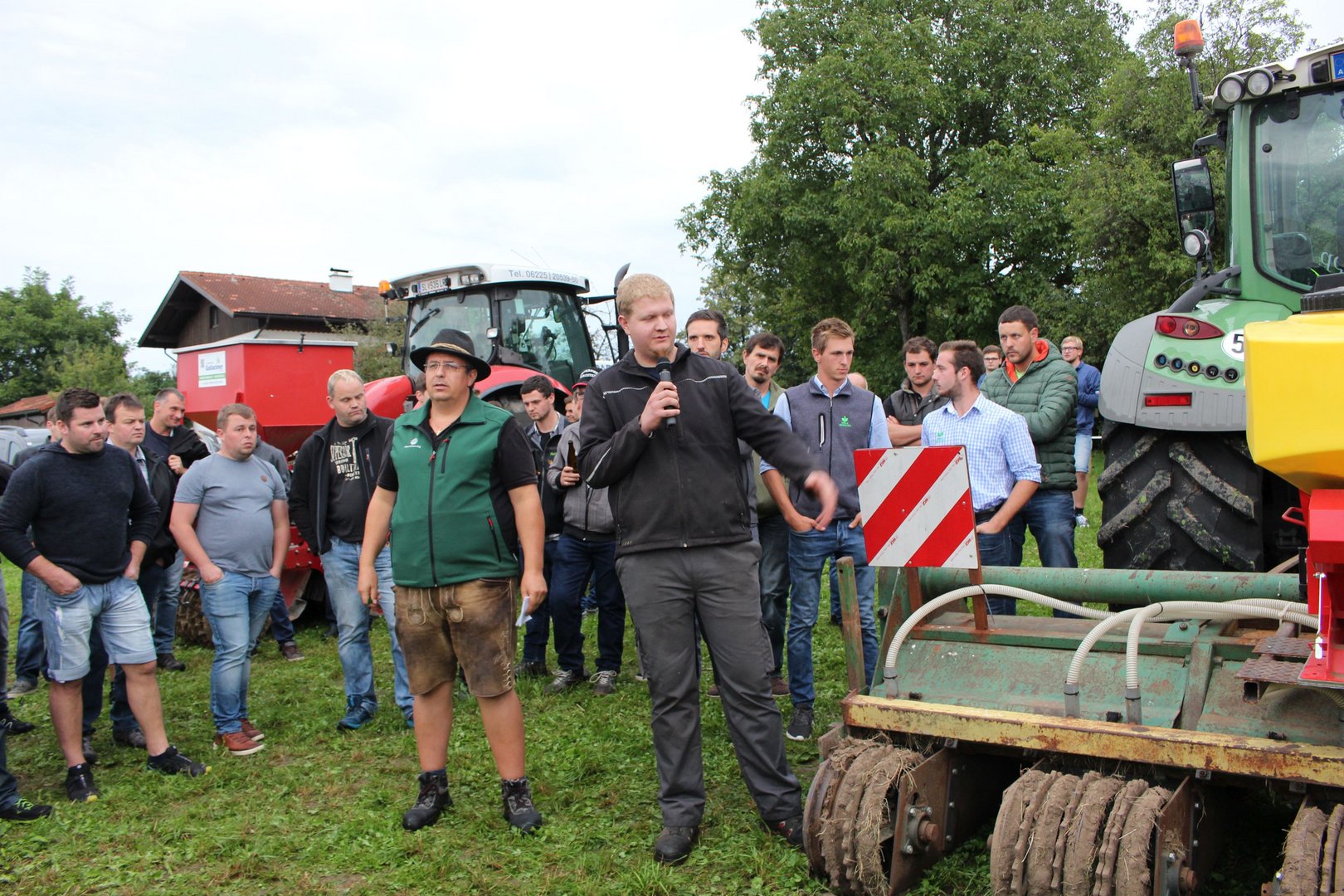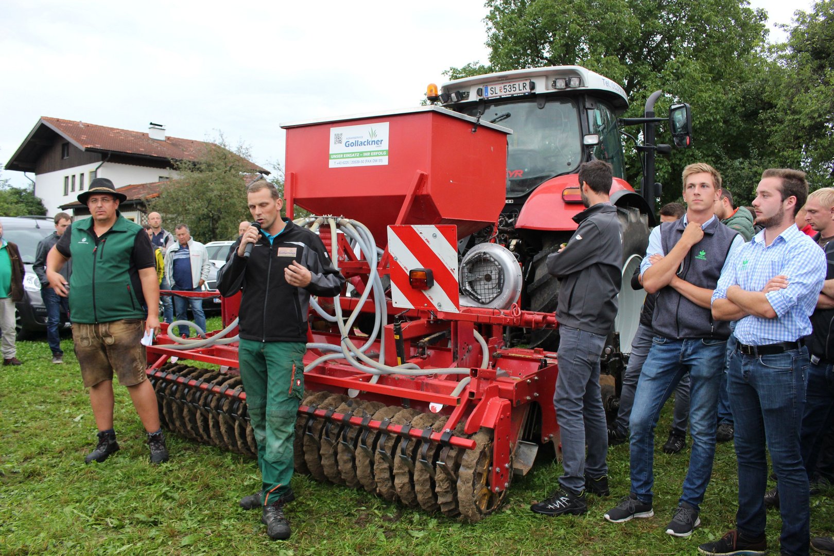 Das Highlight des Abends war die Besichtigung eines Anbauversuches, der von Martin Zauner und Michael Gangl (beide Mitglieder der Landjugend Lamprechtshausen) im Zuge ihrer vorwissenschaftlichen Arbeit an der HBLA Ursprung durchgeführt wird. Dabei wird Luzerne als Nachsaatoption im Dauergrünland getestet. Ein weiterer Höhepunkt für die Teilnehmer war die Maschinenvorführung und Technikvorstellung durch den Maschinenring Agrarkundenbetreuer Manfred Tanner. Dabei wurde auch die Thematik „Richtlinien bei Grünlanderneuerungen und Vorgaben bei Grünlandumbruch im INVEKOS-Fördersystem“ erklärt. „Die ausgeprägten Trockenperioden der letzten zwei Jahre haben deutlich gezeigt, dass auch die Grünlandbewirtschaftung vor neuen pflanzenbaulichen Herausforderungen steht. Klimafitte Nachsaaten mit der richtigen Sortenauswahl und die Schädlingsbekämpfung sind Themen denen wir uns in der Salzburger Landwirtschaft in der Zukunft vermehrt stellen müssen“, so die Agrarbereichsleiterin des Maschinenring Salzburg Elisabeth Neureiter. „Dies sind Aufgaben die auch vielen zukünftigen HofübernehmerInnen bevorstehen. Aus diesem Grund ist für uns die Zusammenarbeit mit Partnern wie dem Maschinenring sehr wichtig.“, ergänzt Claudia Frauenschuh, Landesleiterin-Stv. der Landjugend Salzburg.
