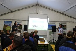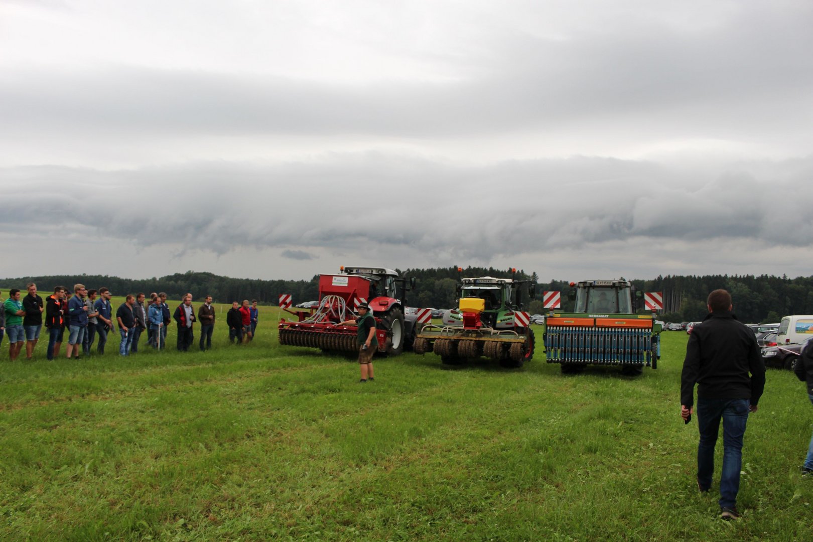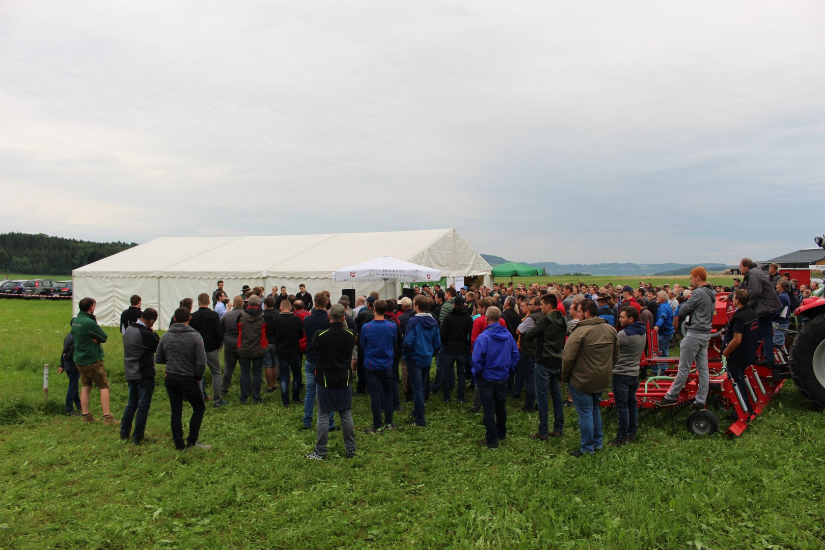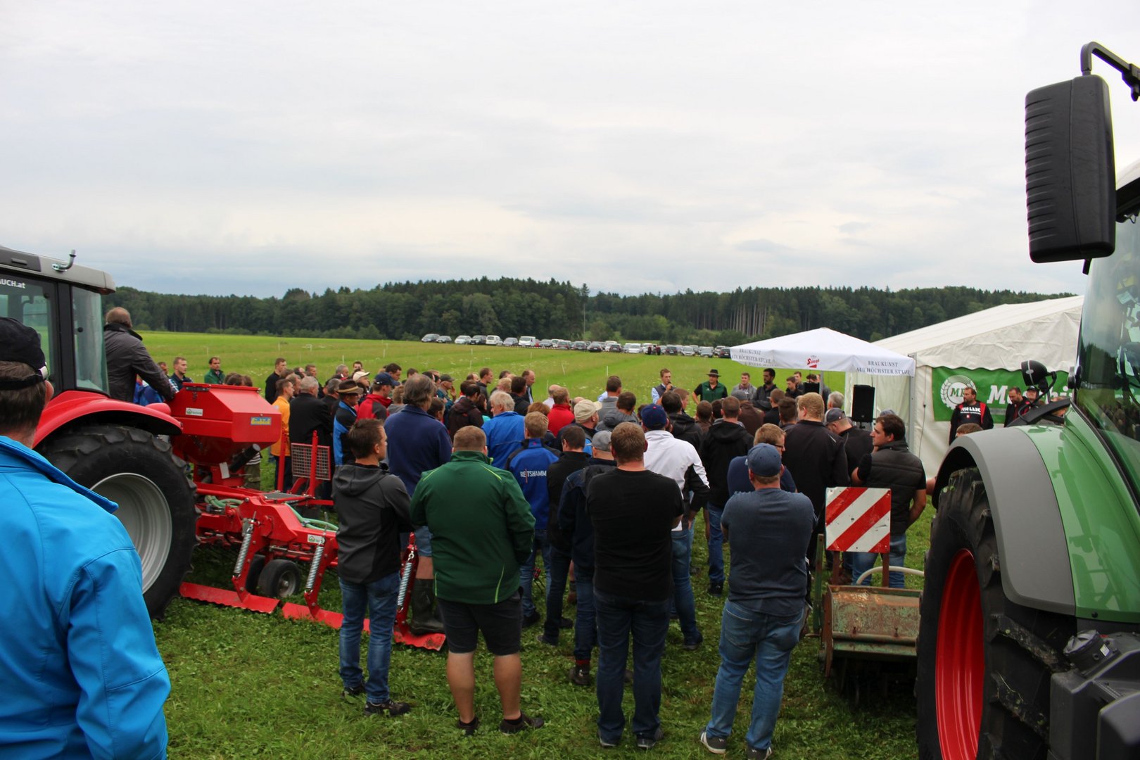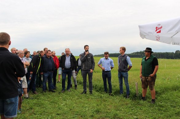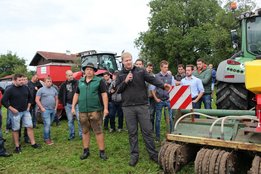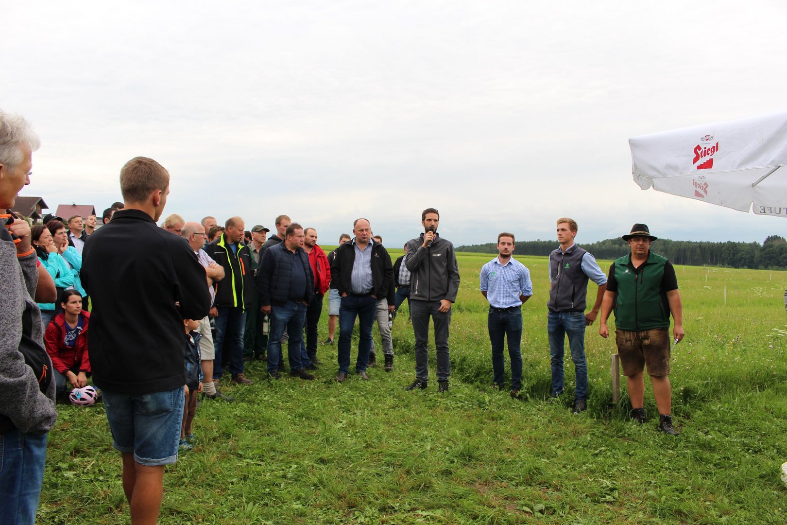 Das Highlight des Abends war die Besichtigung eines Anbauversuches, der von Martin Zauner und Michael Gangl (beide Mitglieder der Landjugend Lamprechtshausen) im Zuge ihrer vorwissenschaftlichen Arbeit an der HBLA Ursprung durchgeführt wird. Dabei wird Luzerne als Nachsaatoption im Dauergrünland getestet. Ein weiterer Höhepunkt für die Teilnehmer war die Maschinenvorführung und Technikvorstellung durch den Maschinenring Agrarkundenbetreuer Manfred Tanner. Dabei wurde auch die Thematik „Richtlinien bei Grünlanderneuerungen und Vorgaben bei Grünlandumbruch im INVEKOS-Fördersystem“ erklärt. „Die ausgeprägten Trockenperioden der letzten zwei Jahre haben deutlich gezeigt, dass auch die Grünlandbewirtschaftung vor neuen pflanzenbaulichen Herausforderungen steht. Klimafitte Nachsaaten mit der richtigen Sortenauswahl und die Schädlingsbekämpfung sind Themen denen wir uns in der Salzburger Landwirtschaft in der Zukunft vermehrt stellen müssen“, so die Agrarbereichsleiterin des Maschinenring Salzburg Elisabeth Neureiter. „Dies sind Aufgaben die auch vielen zukünftigen HofübernehmerInnen bevorstehen. Aus diesem Grund ist für uns die Zusammenarbeit mit Partnern wie dem Maschinenring sehr wichtig.“, ergänzt Claudia Frauenschuh, Landesleiterin-Stv. der Landjugend Salzburg.