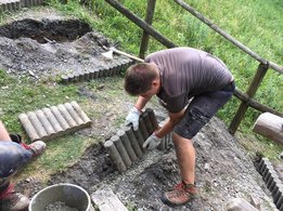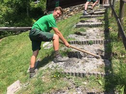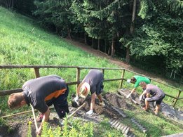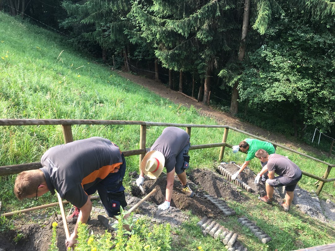 „Die Stufen wurden neu ausgerichtet und in Beton versetzt, sodass eine lange Lebensdauer des neuen Weges gewährleistet ist“, erklärt Gruppenleiter Manuel Steger. In einer weiteren Bauetappe werden noch die restlichen der insgesamt 218 Stufen in Stand gesetzt und der Weg wird zudem neu geschottert. „Die Mitglieder der Landjugend haben sich mit besonderem Engagement für die Mühlen und somit für unsere Kultur eingesetzt, wofür ich mich ganz herzlich bedanken möchte. Aufgrund des steilen Geländes und der großen Hitze war die Arbeit sehr anstrengend“, so Bürgermeister Bernhard Weiß, der sich persönlich vom Baufortschritt überzeugte.