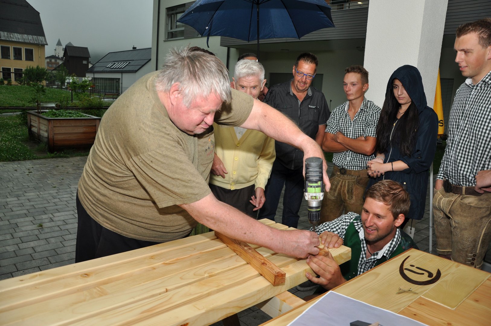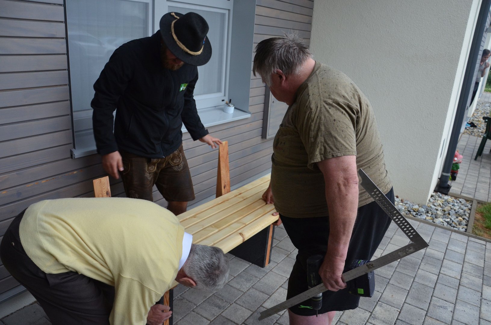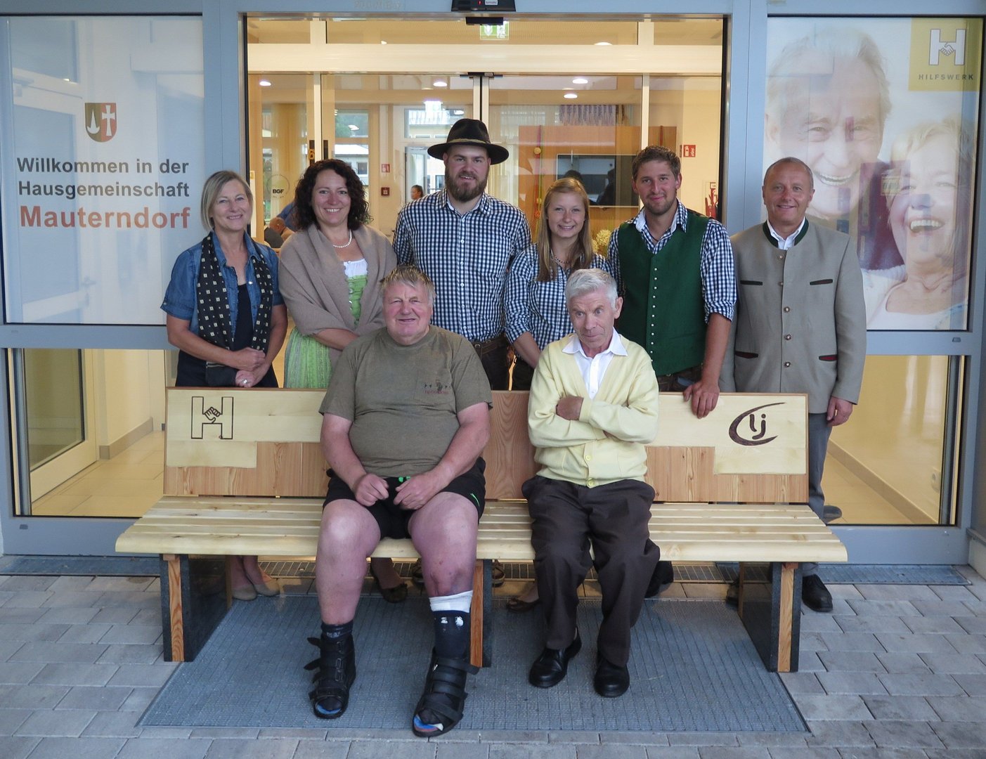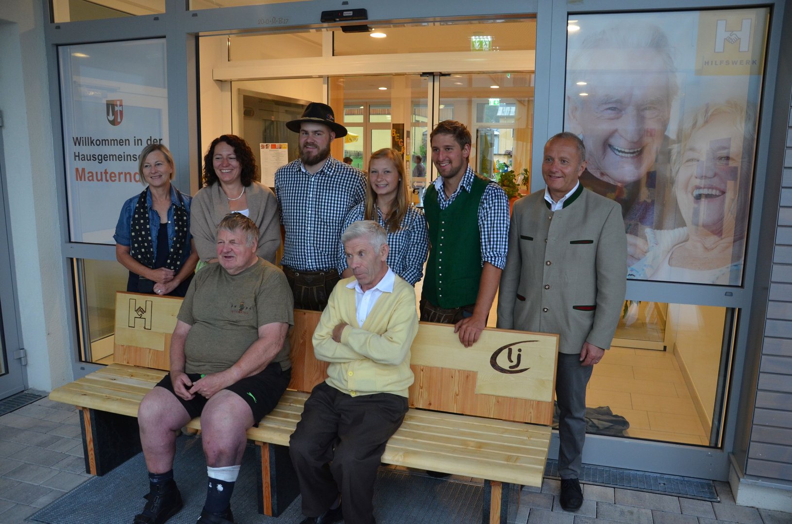 Den Startschuss zum Bezirksprojekt machte am vergangenen Samstag die Landjugend Mauterndorf-Tweng. Gemeinsam mit dem Salzburger Hilfswerk und den Bewohnern der Hausgemeinschaft wurde das Bankerl vor dem Dr.-Eugen-Bruning-Haus aufgestellt. Nach einem Lokalaugenschein planten die Mauterndorfer Landjugendmitglieder unter der Leitung von Christoph Gruber und Maria Schitter ihr Bankerl und setzten ihre Ideen sofort in die Tat um. Unterstützt wurden sie in der Ausführungsphase durch örtliche Firmen Tischlerei Norbert Pirker, Fliesengruber und Jacklbauer, welche das Material sponserten und Holzbau Mauterndorf, welche die Räumlichkeiten zur Bearbeitung zur Verfügung stellten. Am 25. Juni wurde die Bank zusammen mit den Bewohnern des Dr.-Eugen-Bruning-Hauses, Vizebürgermeister Ing. Herbert Eßl, Matthias Wind, Bezirksleiter der Landjugend Lungau, Mitwirkenden des Hilfswerkes und der Landjugend Mauterndorf-Tweng zusammengebaut und eingeweiht.